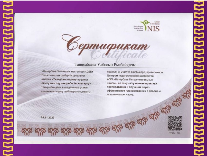 «Назарбаев Зияткерлік мектептері» ДББҰ, Педагогикалық шеберлік орталығы, №375241210 03.11.2022