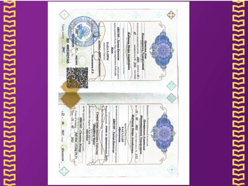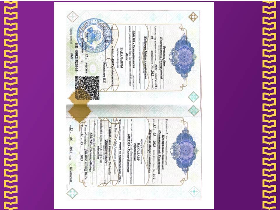 Орталық Азия Инновациялық Университеті, Биология-химия мұғалімі.