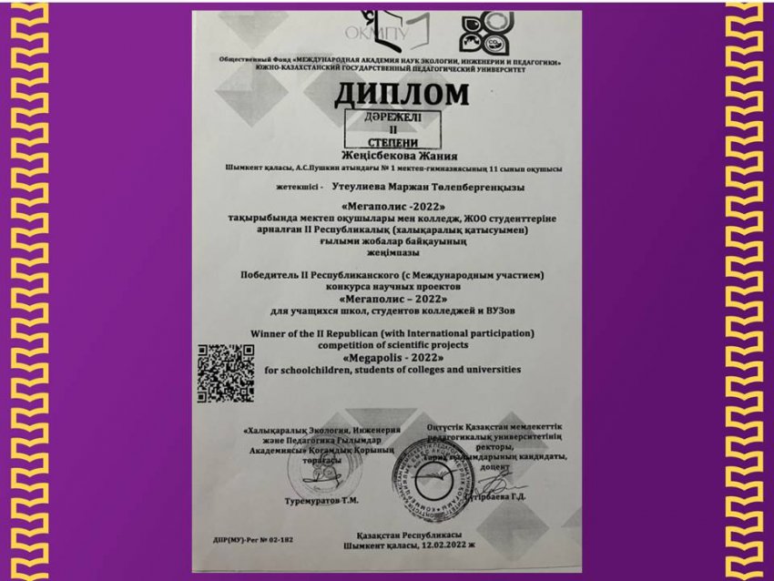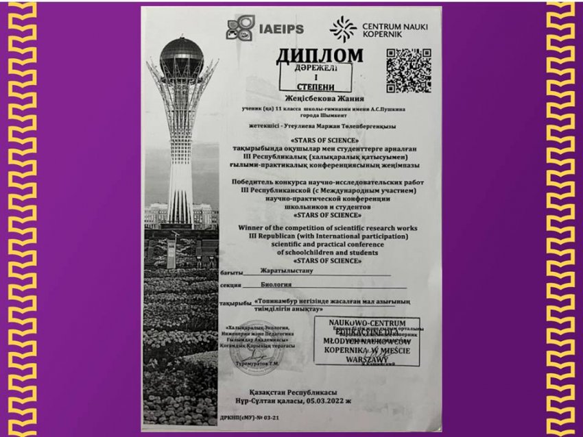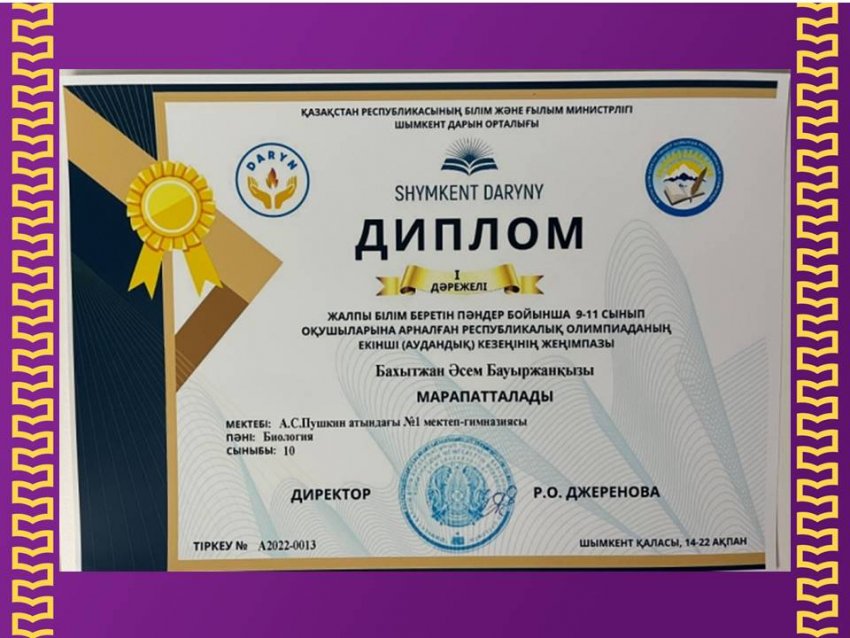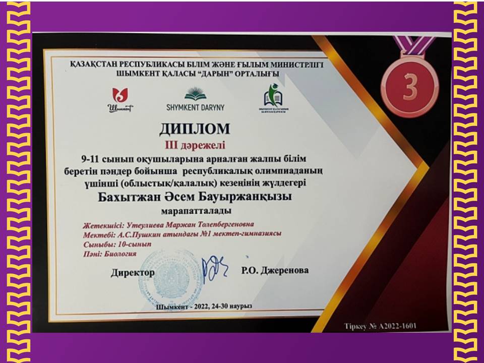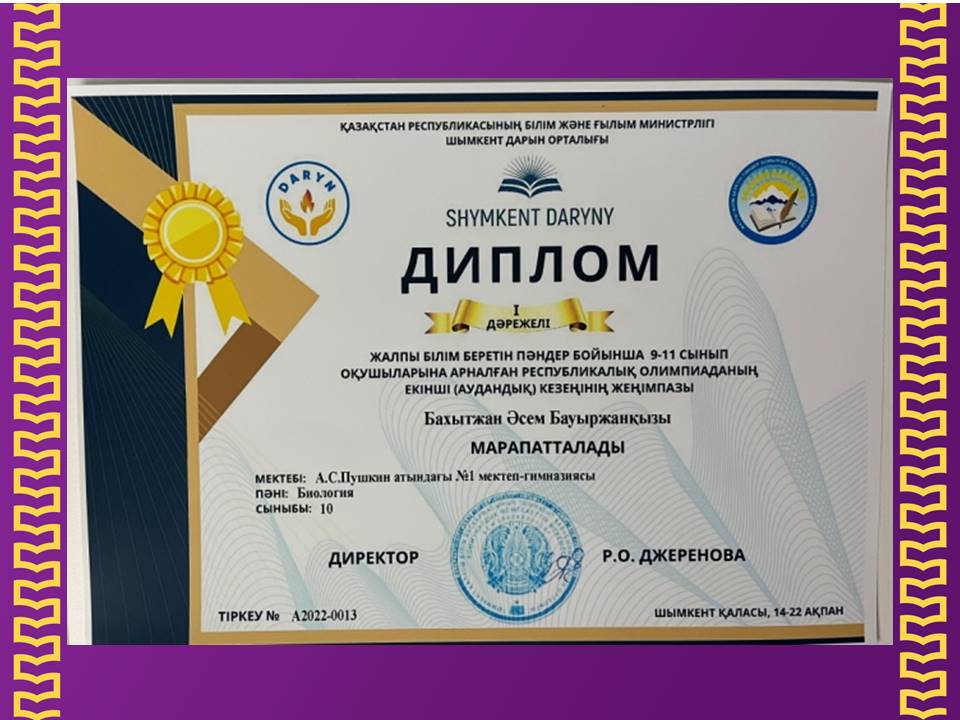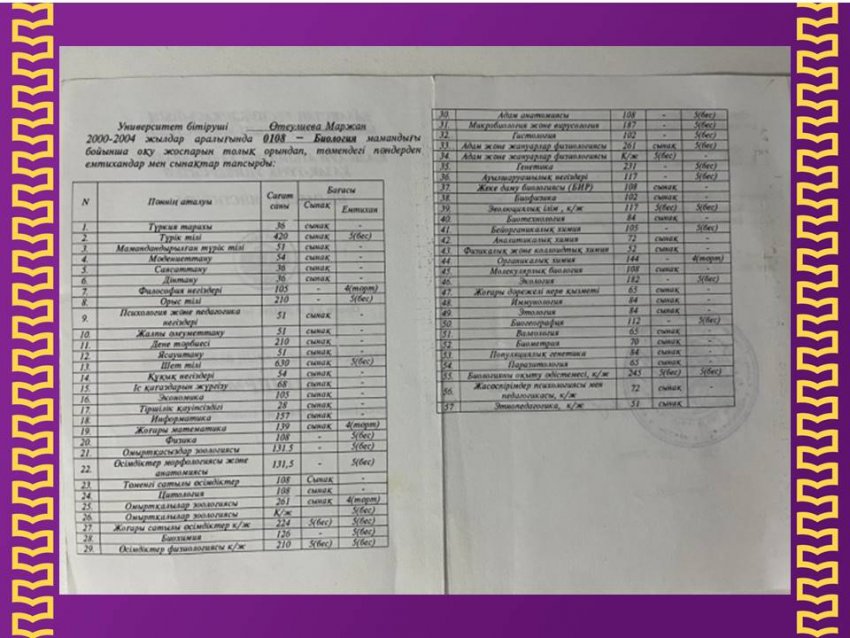 Мамандығы: Х.А.Яссауи атындағы ХҚТУ,биолог