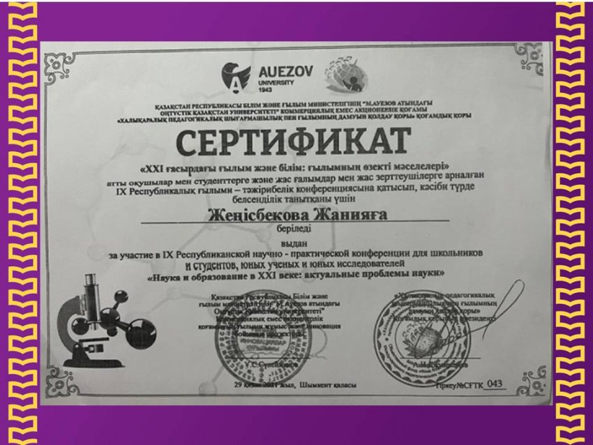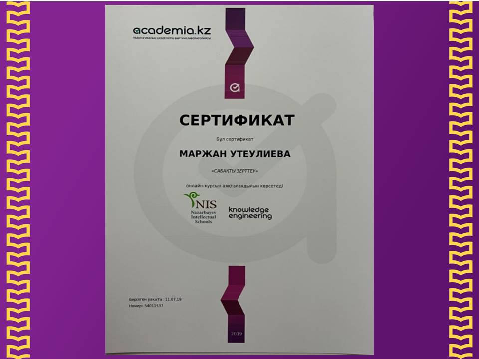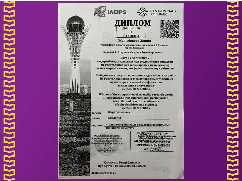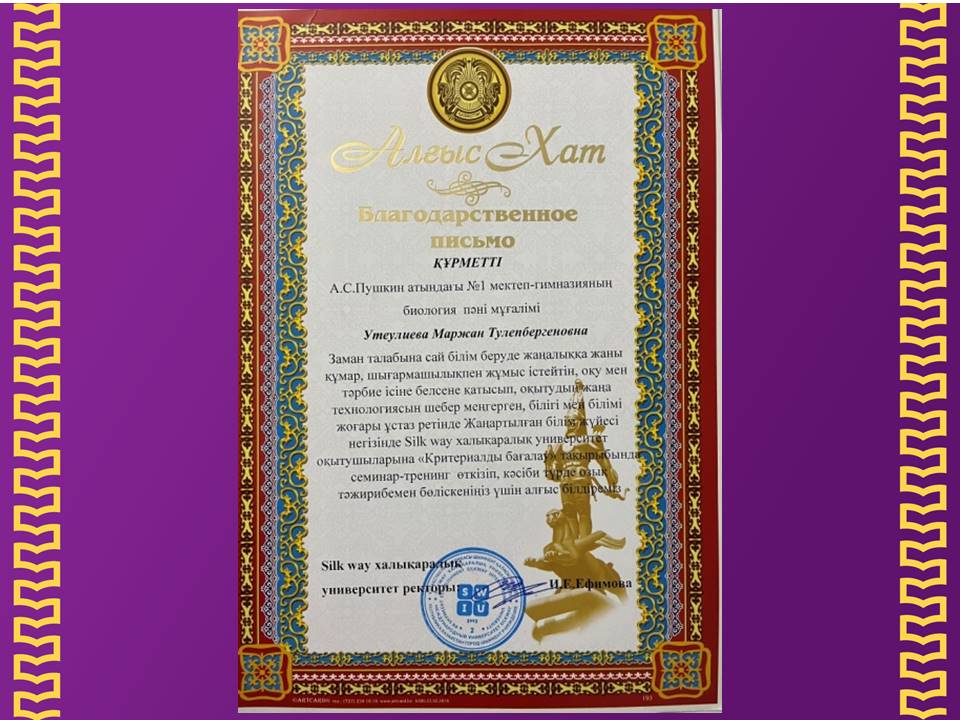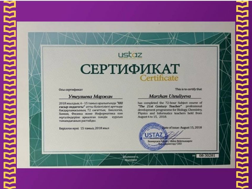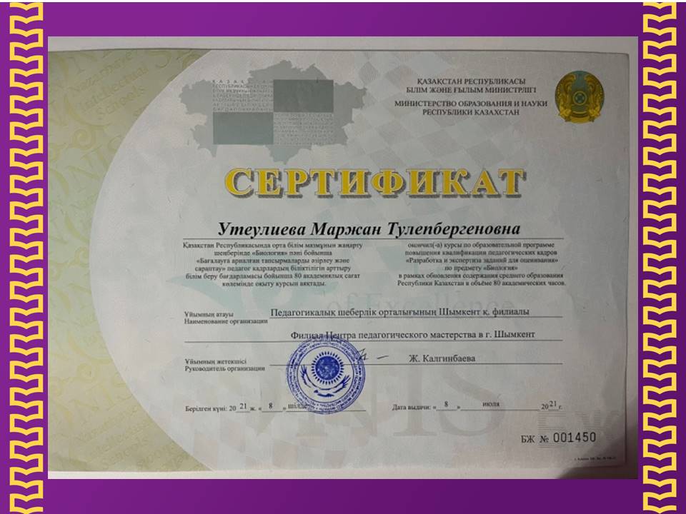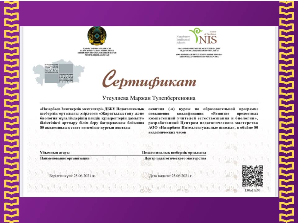 “Назарбаев Зияткерлік мектептері”ДББҰ Педагогикалық шеберлік орталығы “Жаратылыстану және биология мұғалімдерінінің пәндік құзіреттерін дамыту” 25.06.2021 жыл