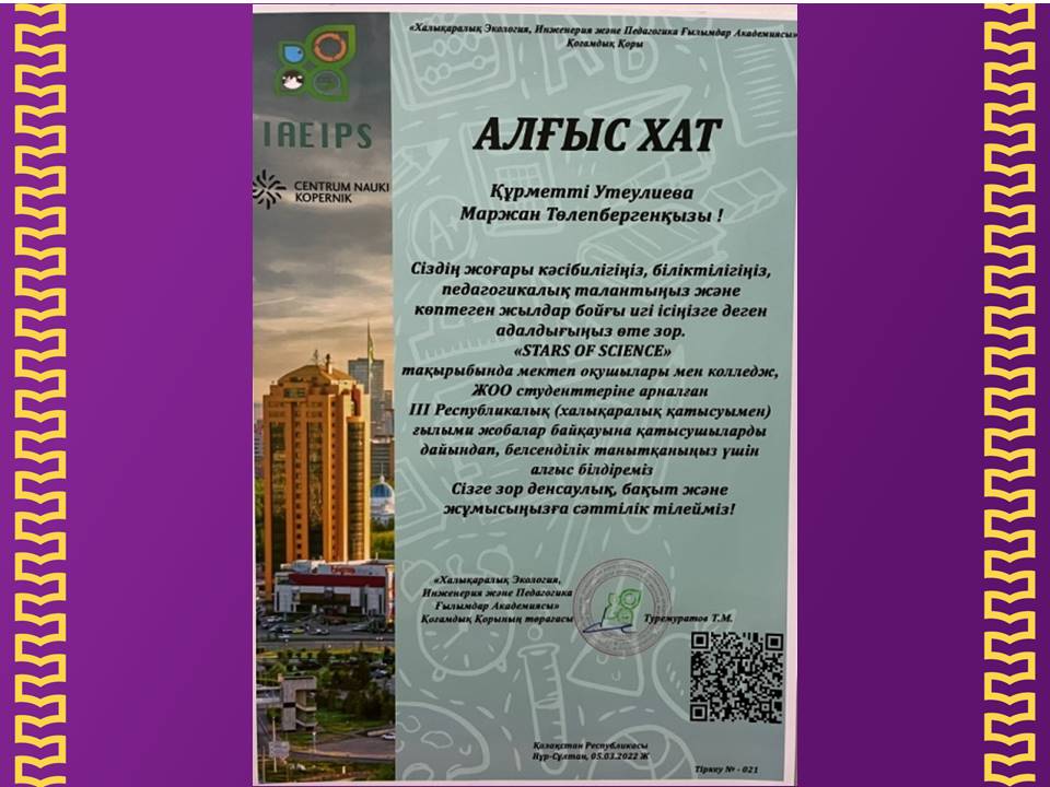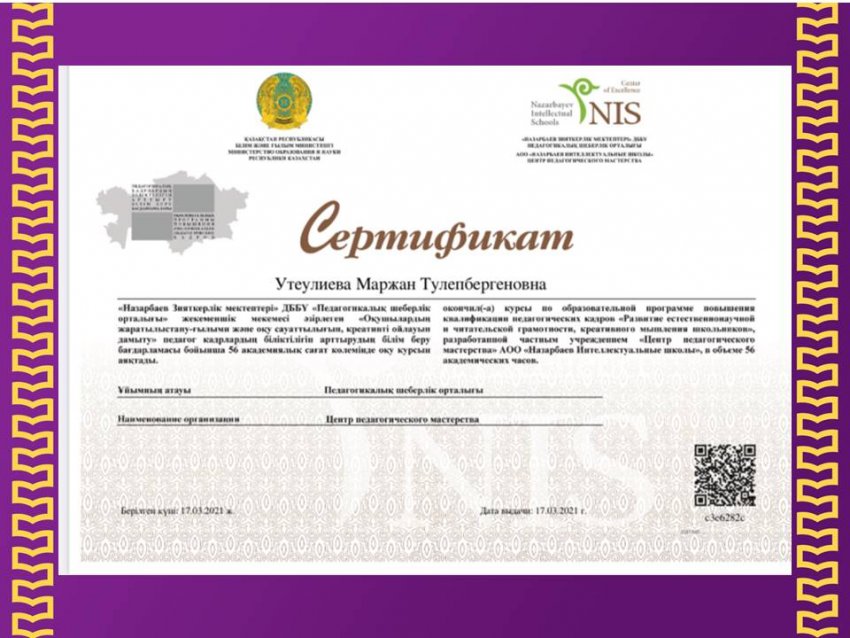 “Назарбаев Зияткерлік мектептері”ДББҰ Педагогикалық шеберлік орталығы “Оқушылардың жаратылыстану-ғылыми және оқу сауаттылығын,креативті ойлауын дамыту” 17.03.2021 жыл