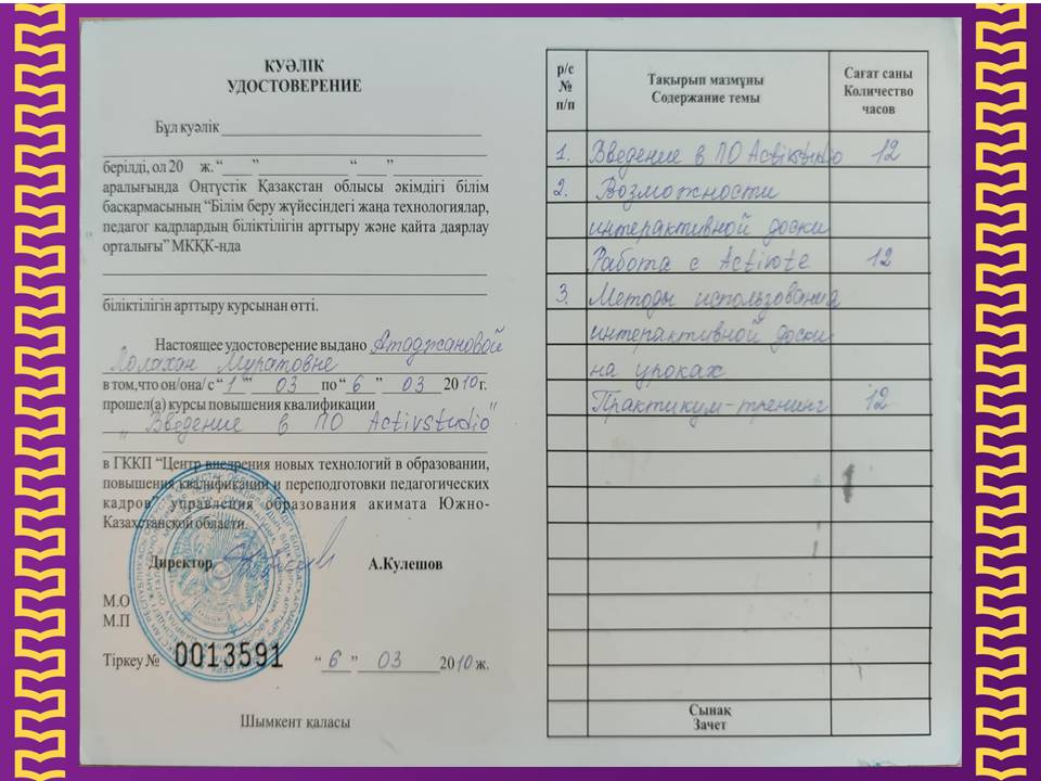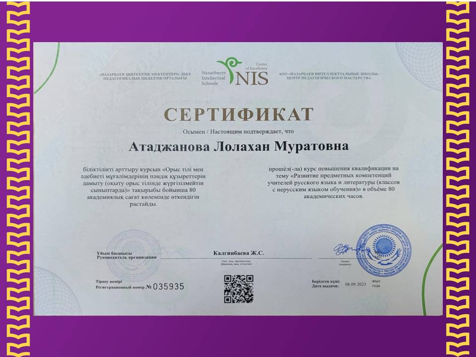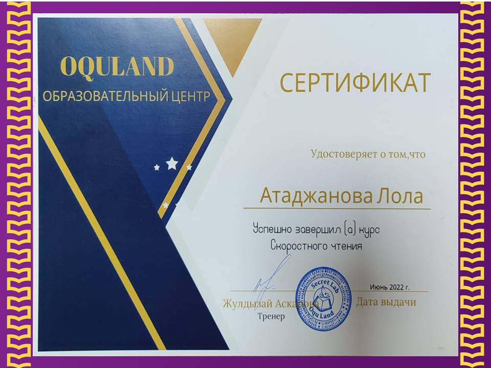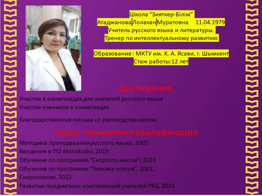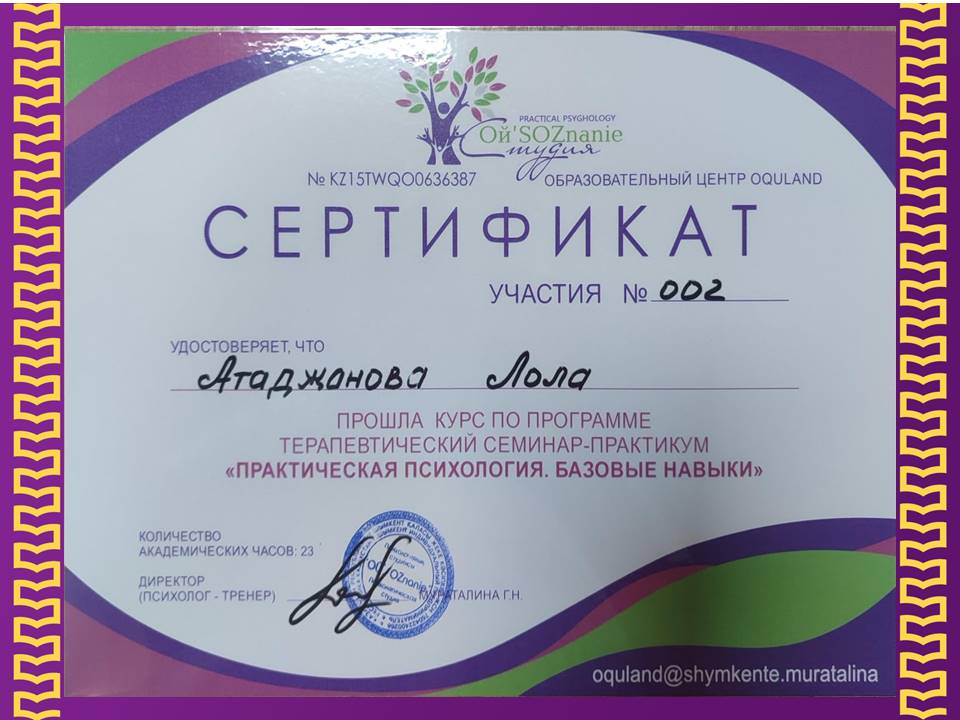 Тренер по интеллектуальному развитию Образование : МКТУ им. Х. А. Ясави, г. Шымкент