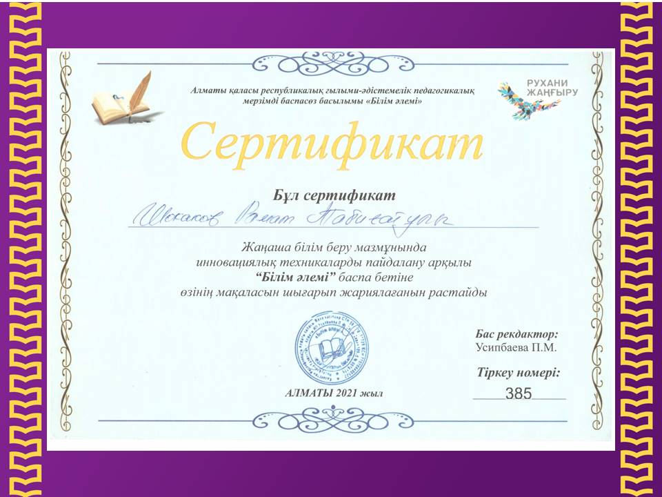 Тарих пәнінің мұғалімі » «Зияткер-Білім» мектебі