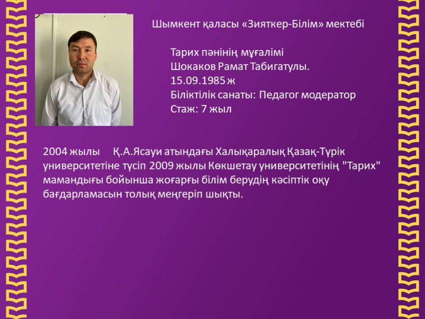 Тарих пәнінің мұғалімі