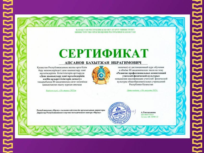 Дене шынықтыру пәнінің мұғалімі » «Зияткер-Білім» мектебі