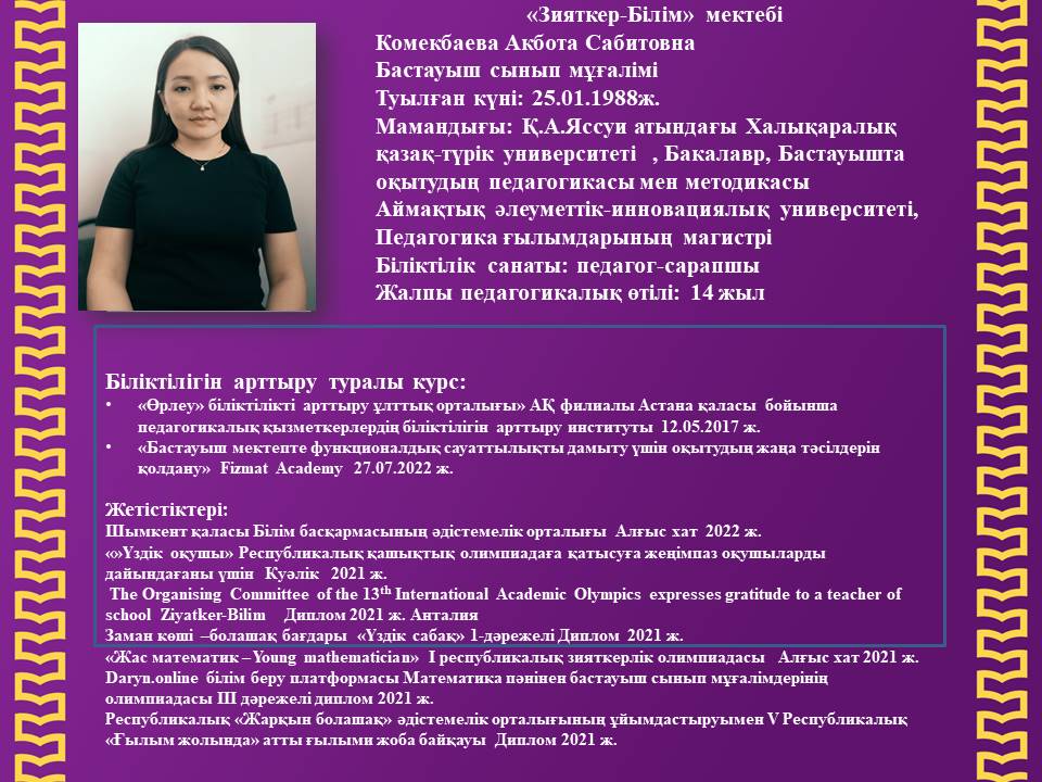 Бастауыш сынып мұғалімі » «Зияткер-Білім» мектебі