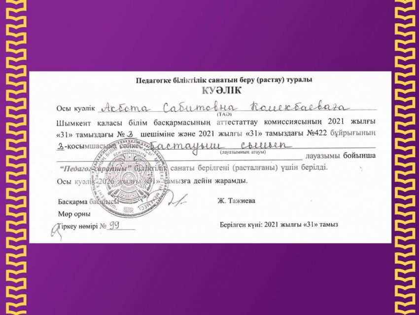 Комекбаева Акбота Сабитовна
