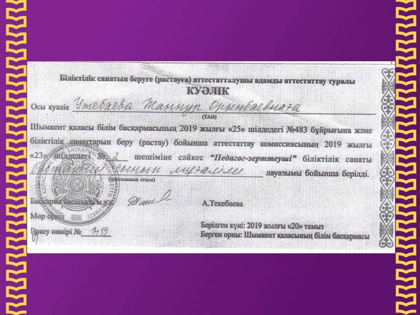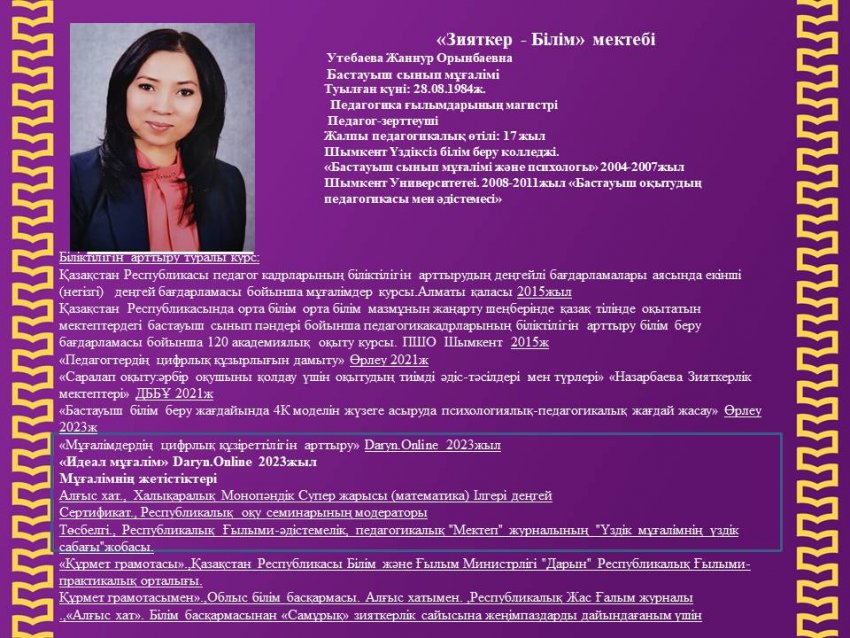 Бастауыш сынып мұғалімі » «Зияткер-Білім» мектебі