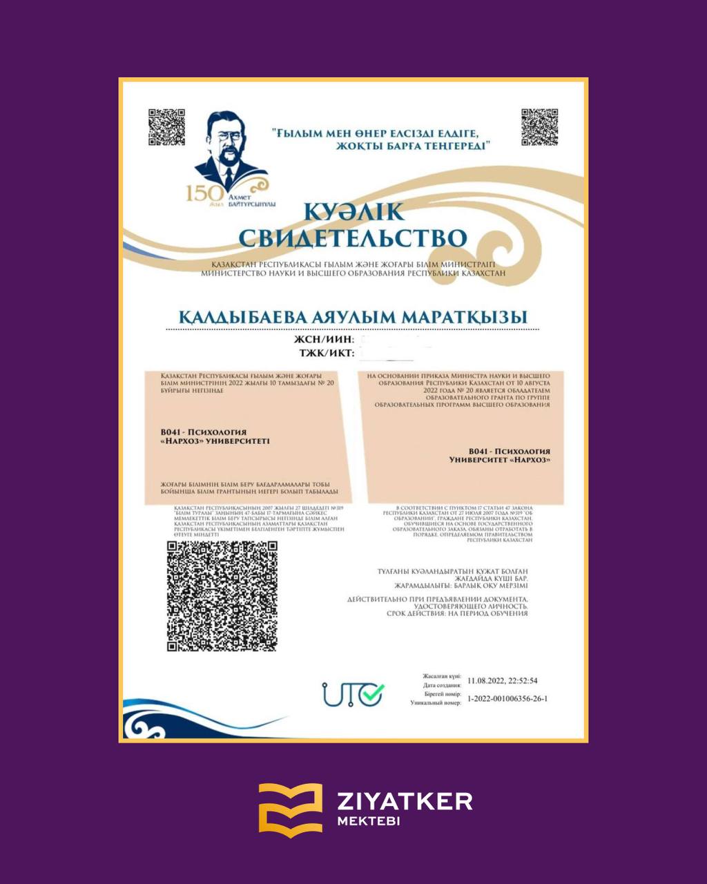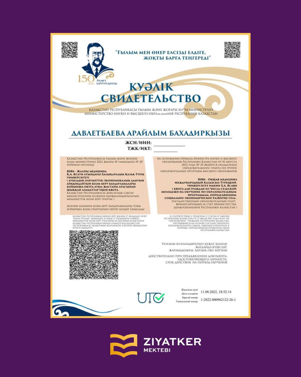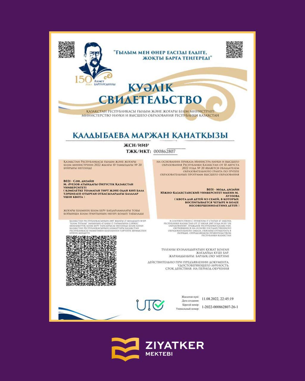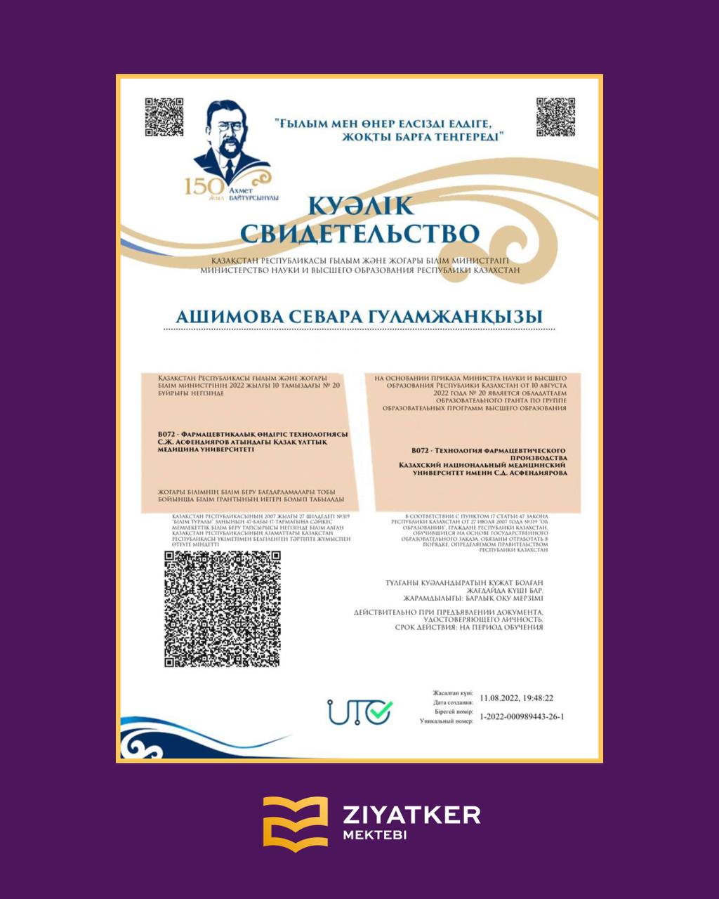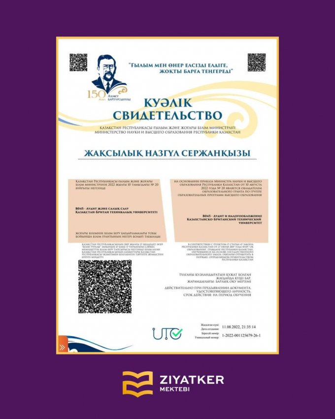 » » » Түлектеріміздің университетке түскендігі туралы куәліктері