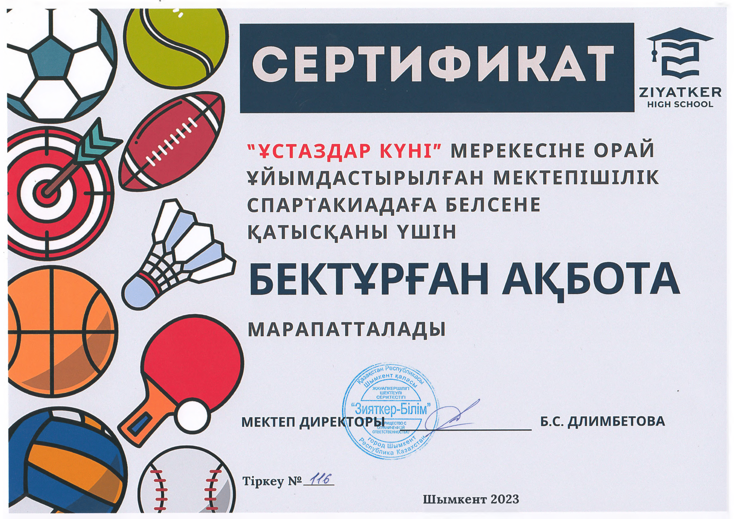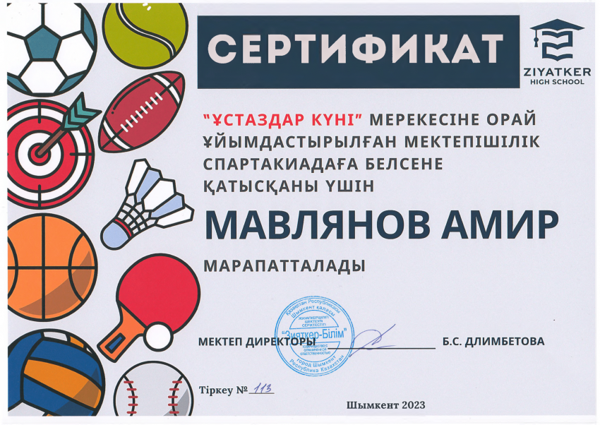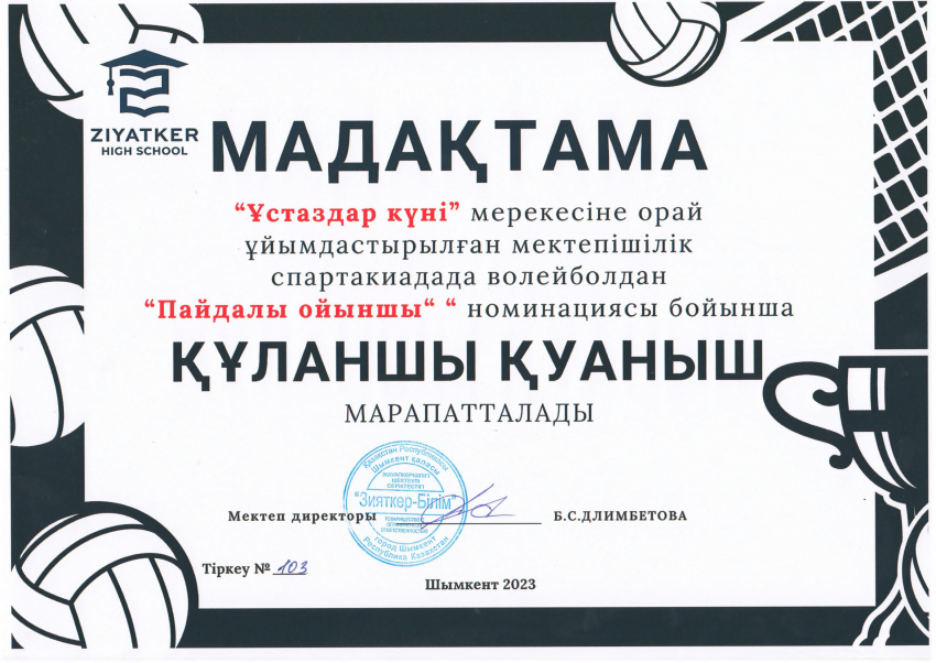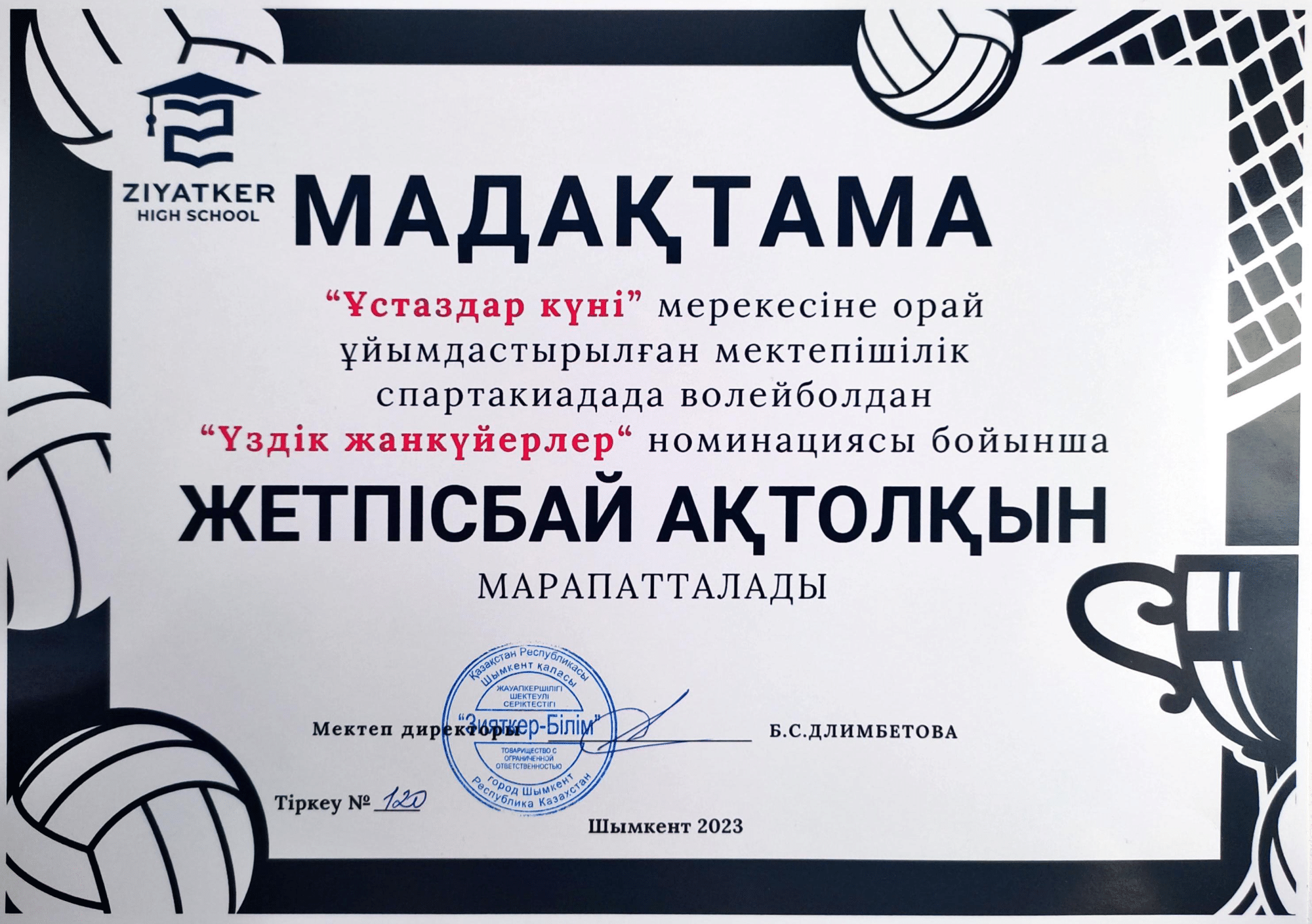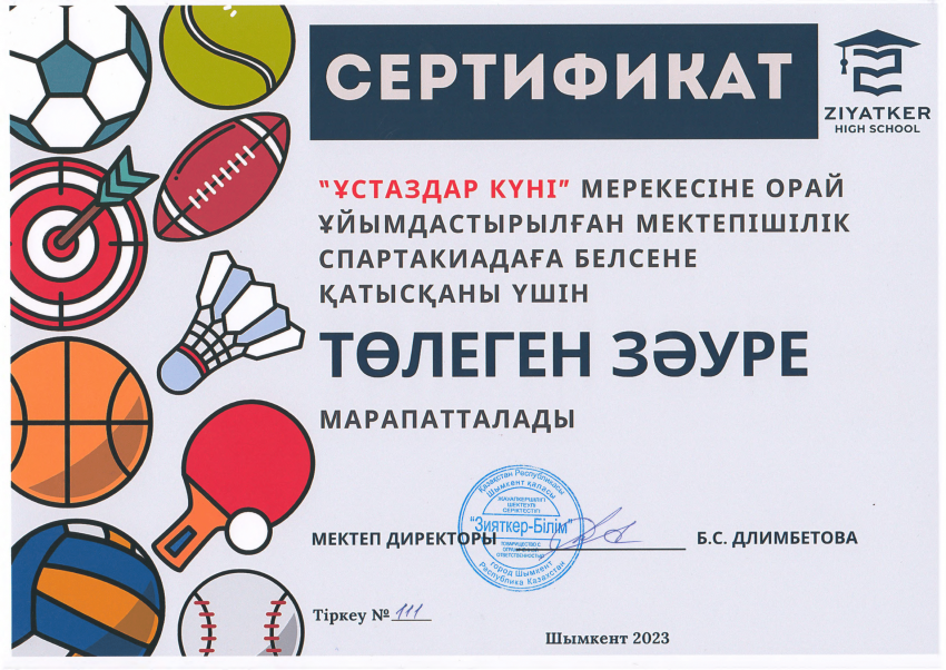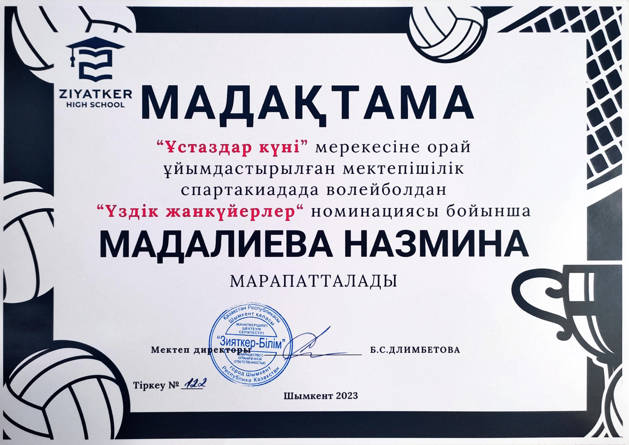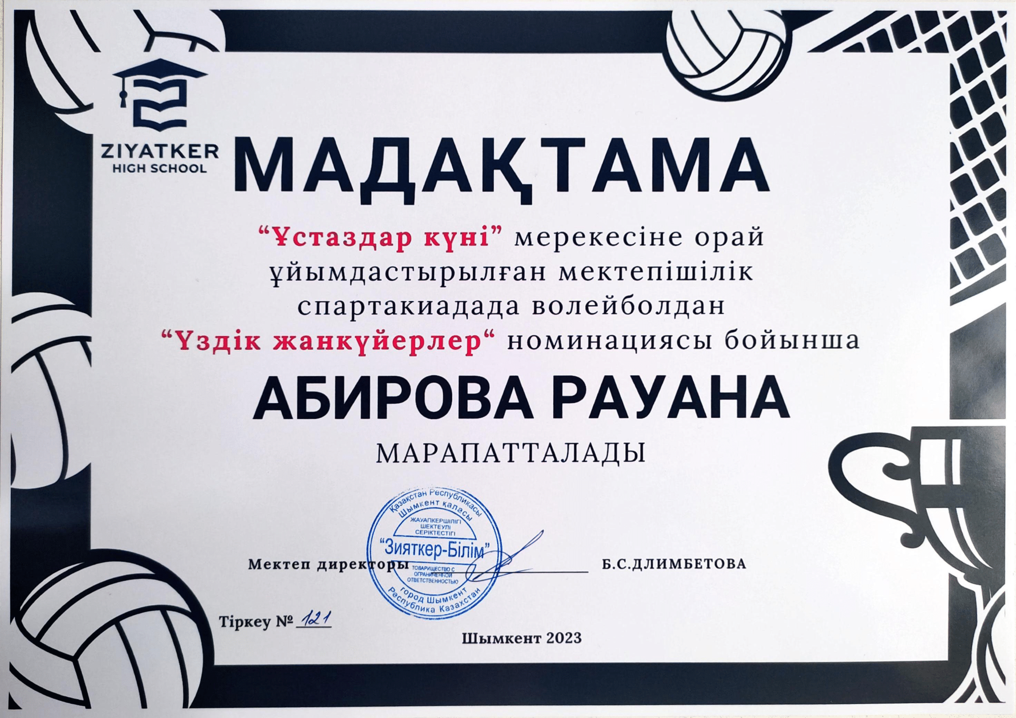 "Ұстаздар күні" мерекесіне орай ұйымдастырылған мектепішілік спартакиада мадақтамалары