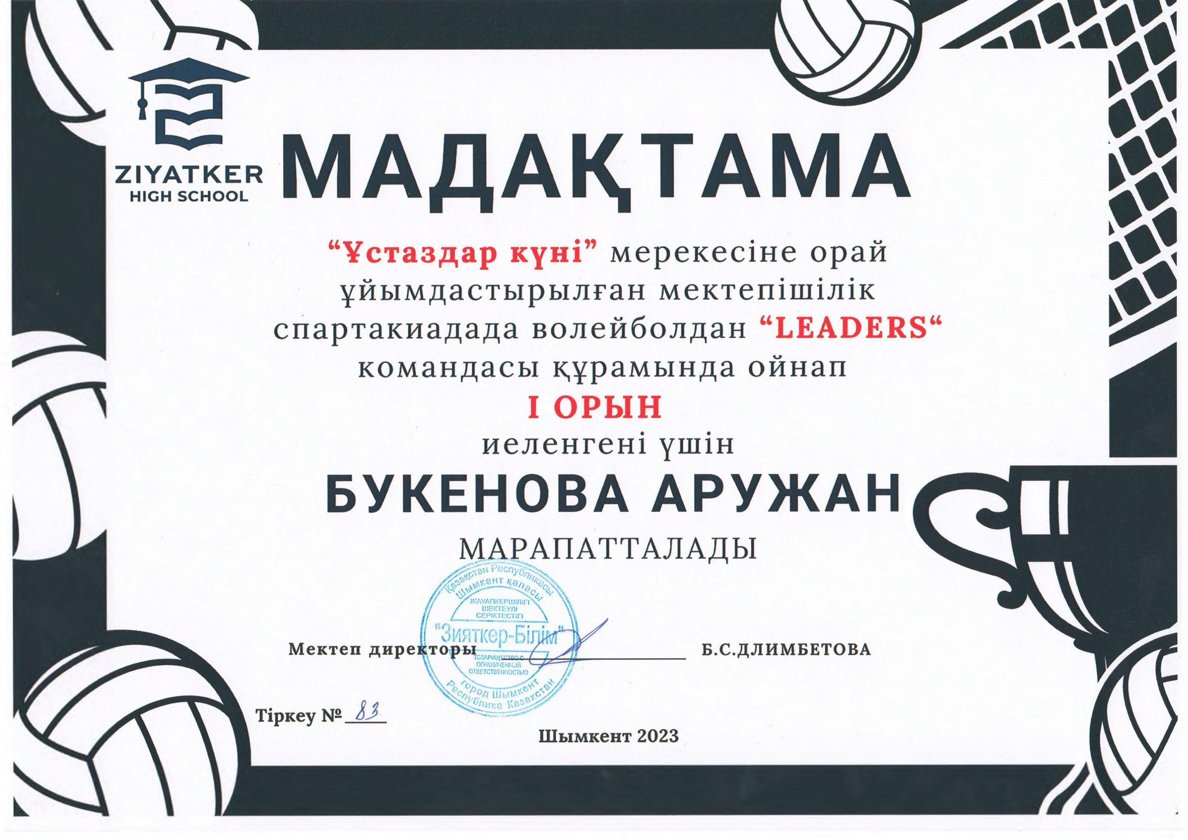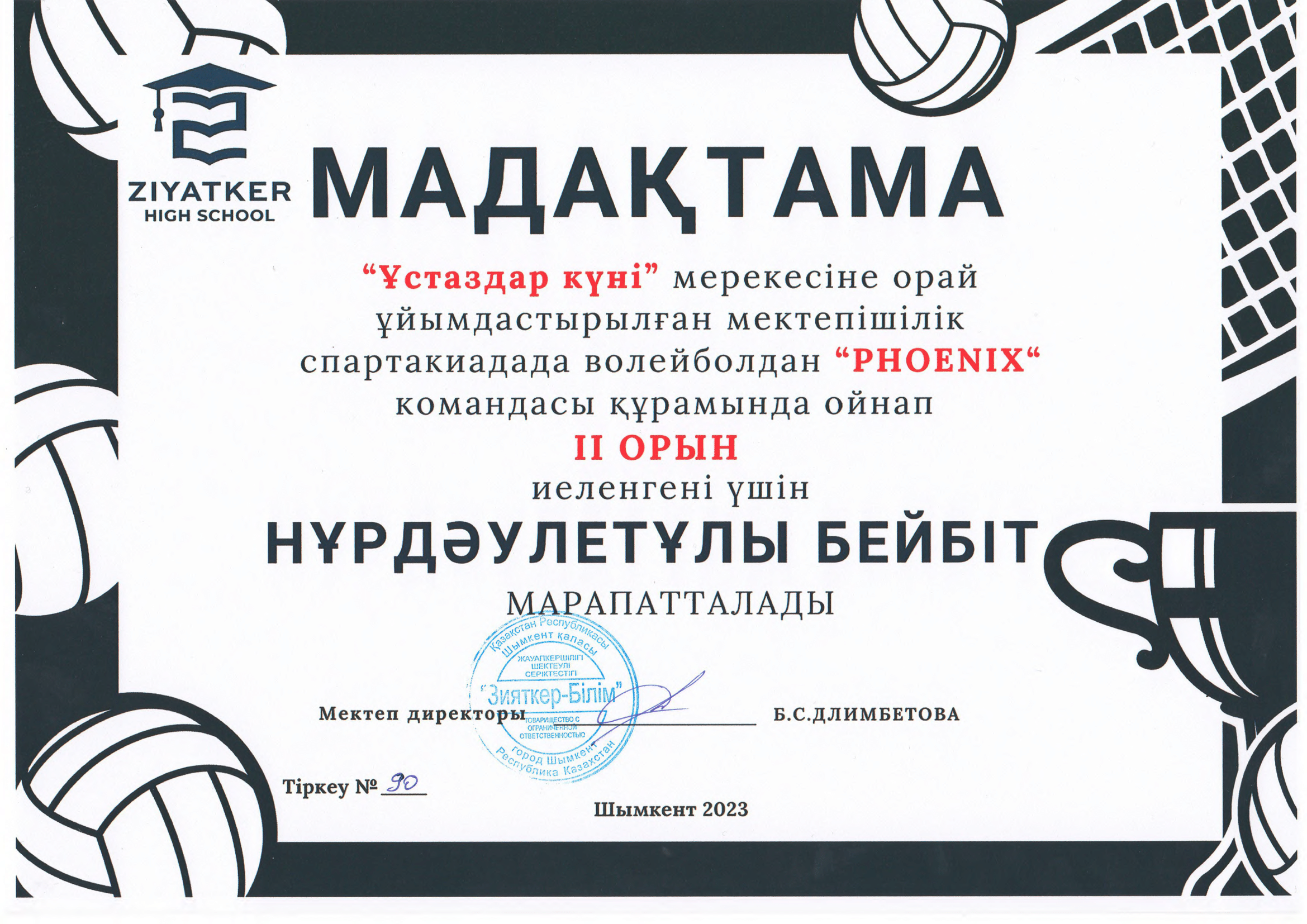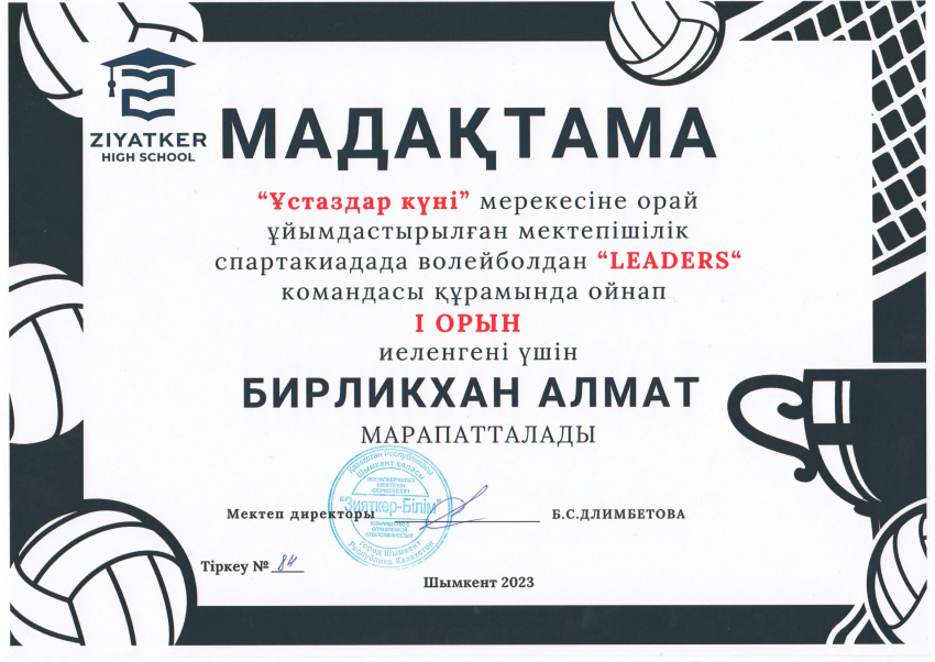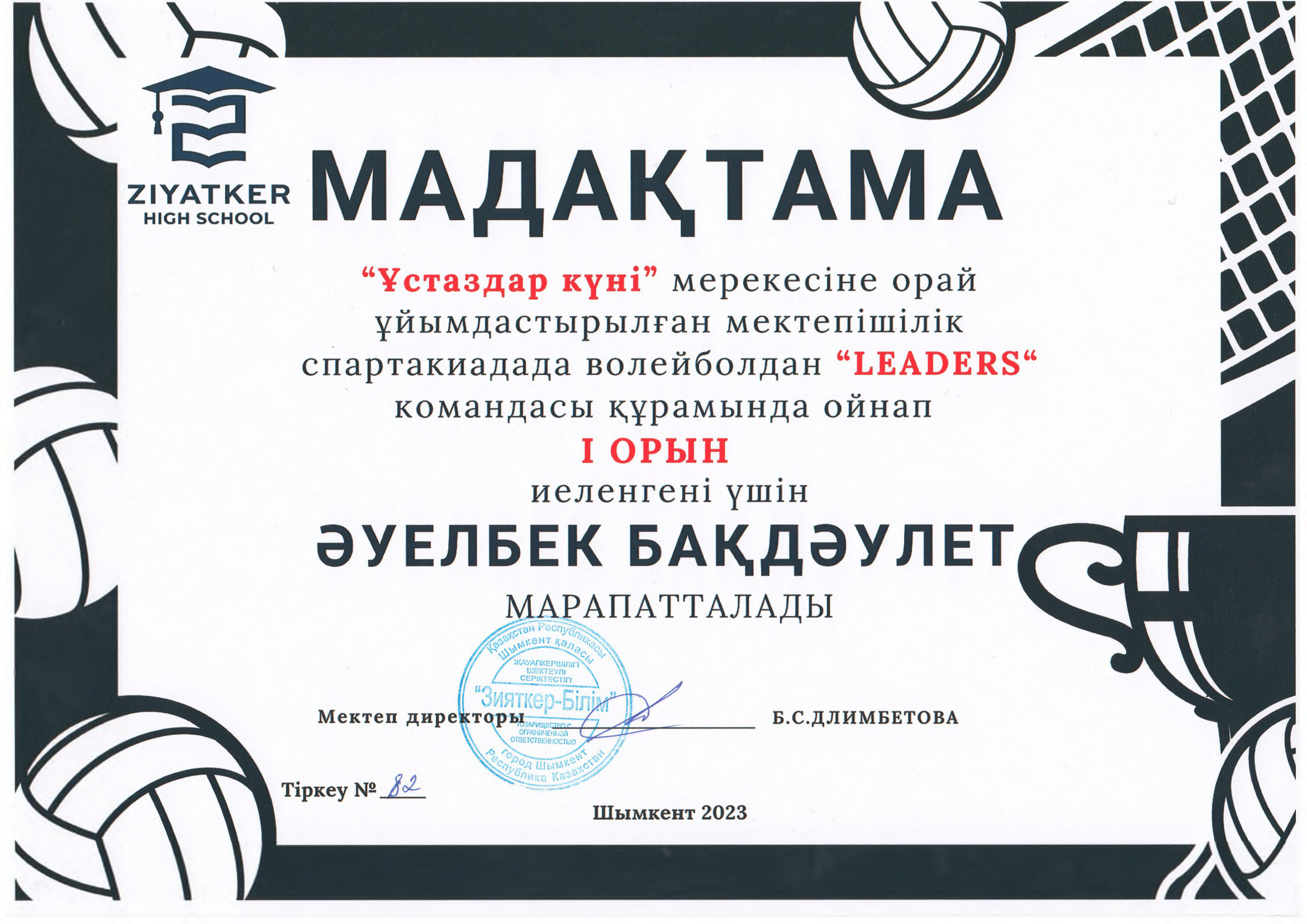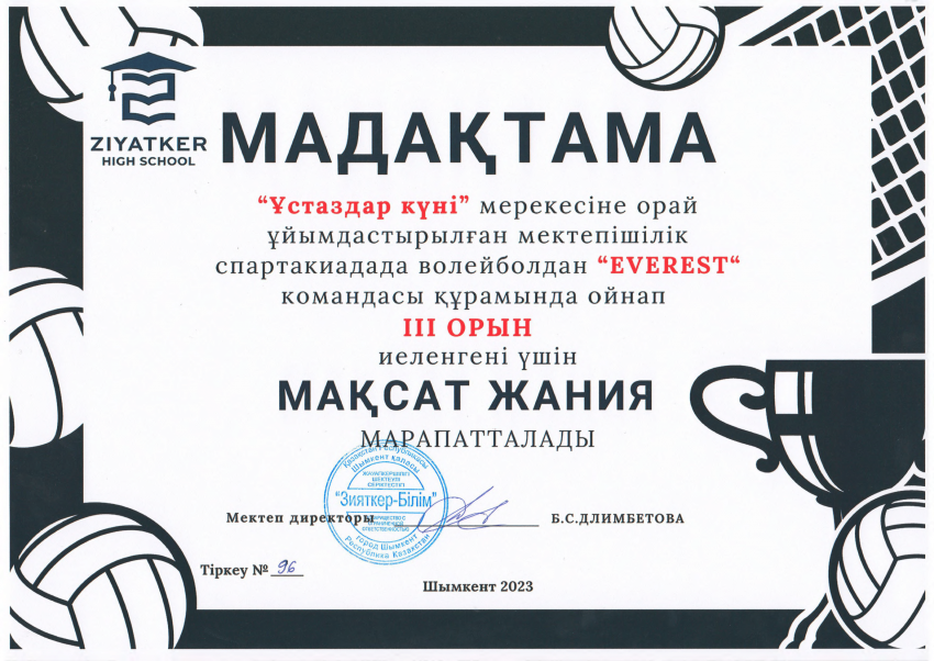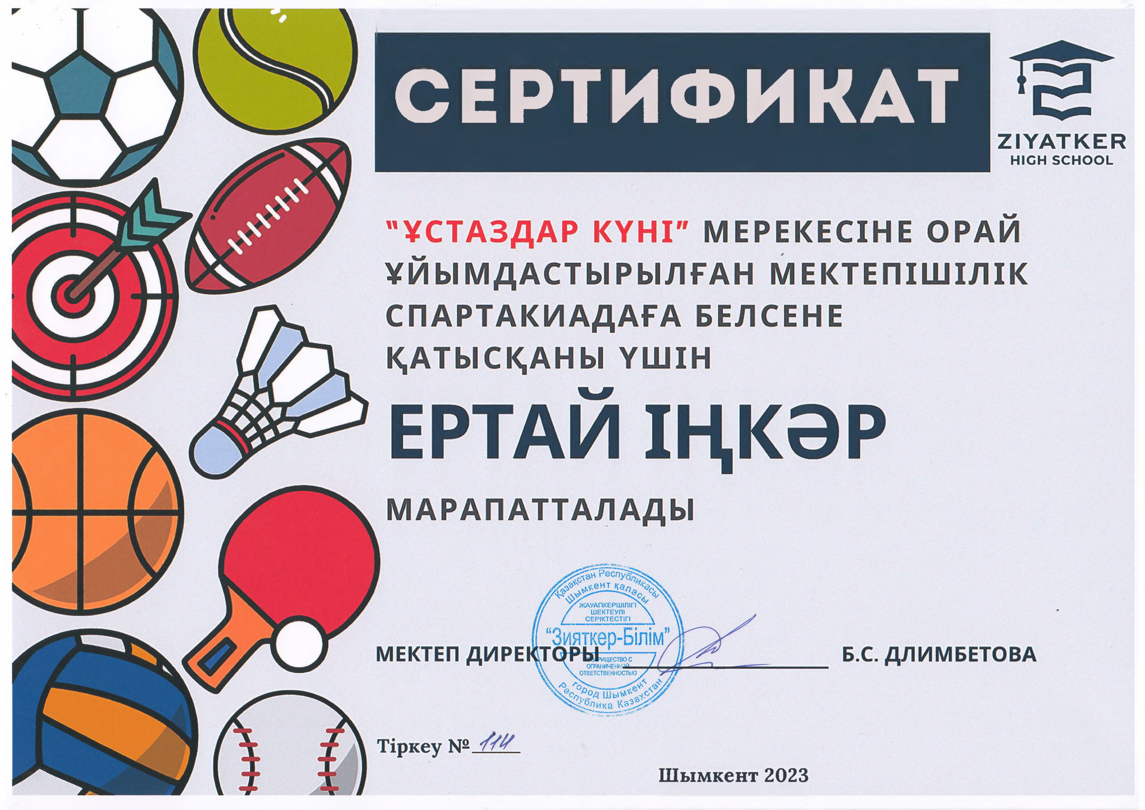"Ұстаздар күні" мерекесіне орай ұйымдастырылған мектепішілік спартакиада мадақтамалары