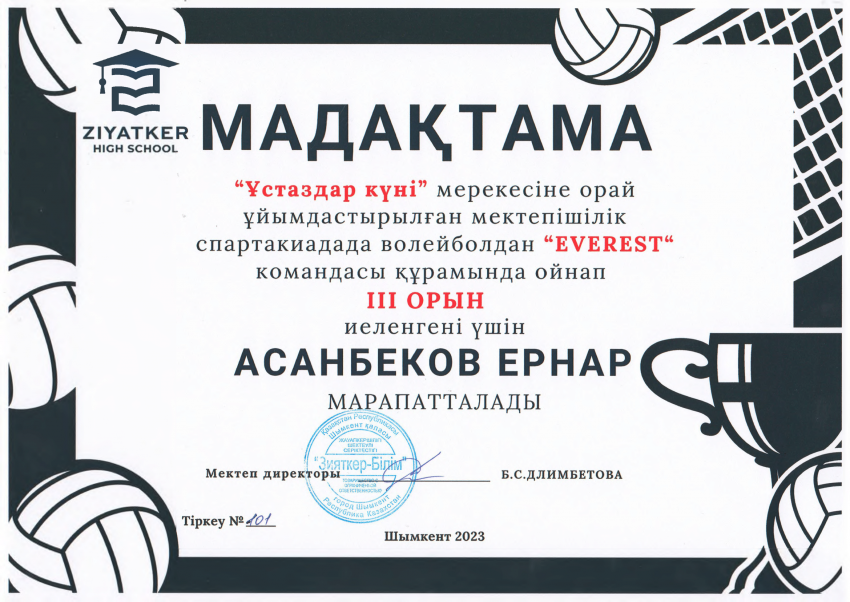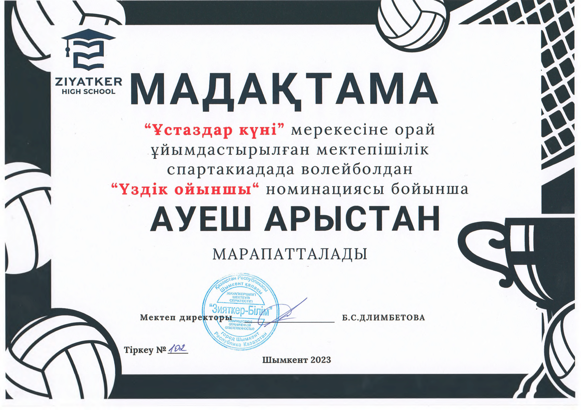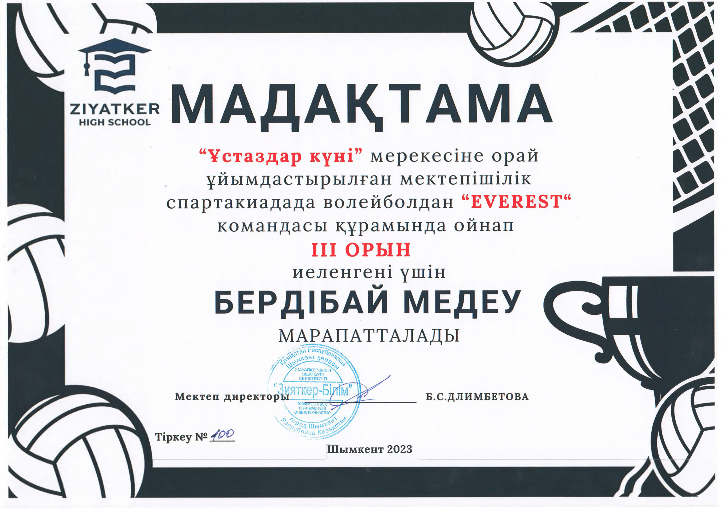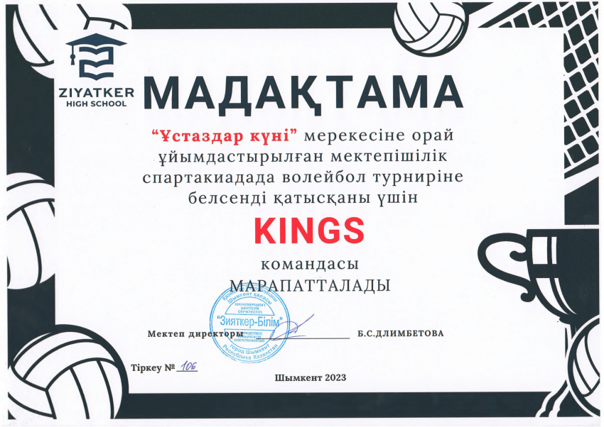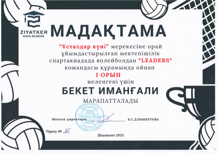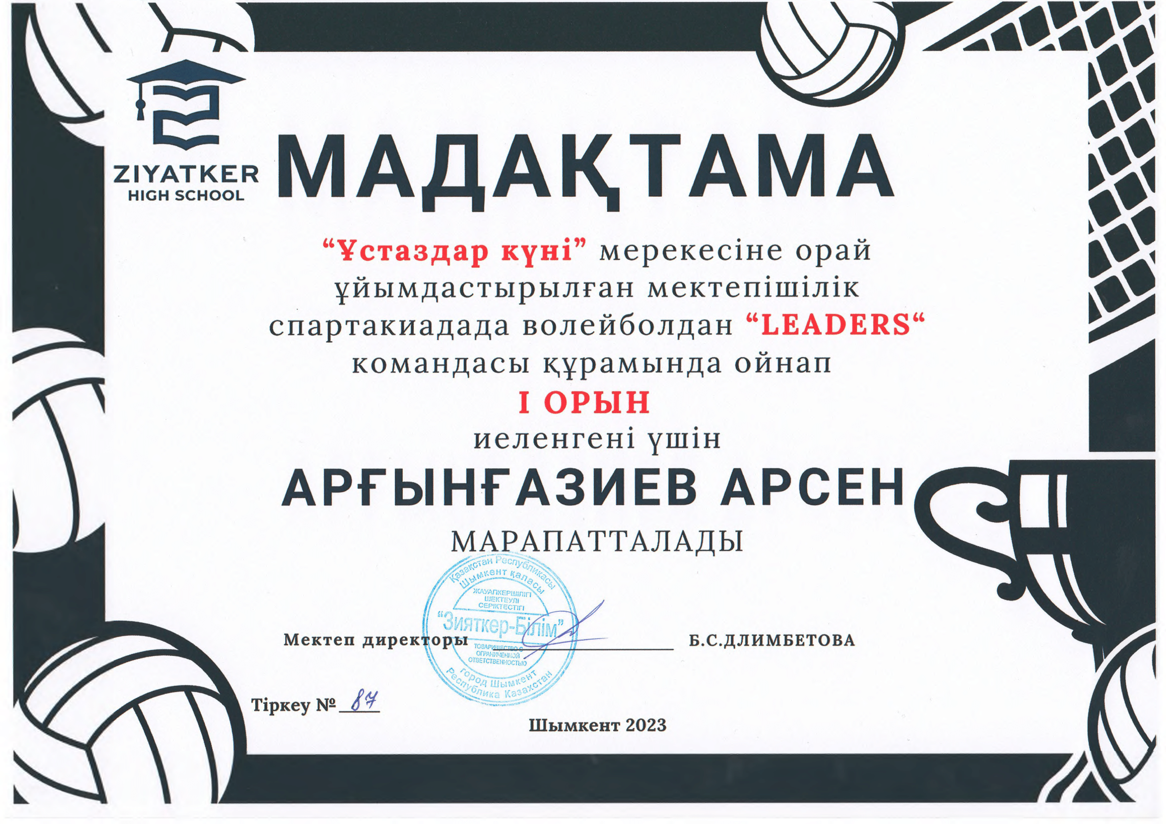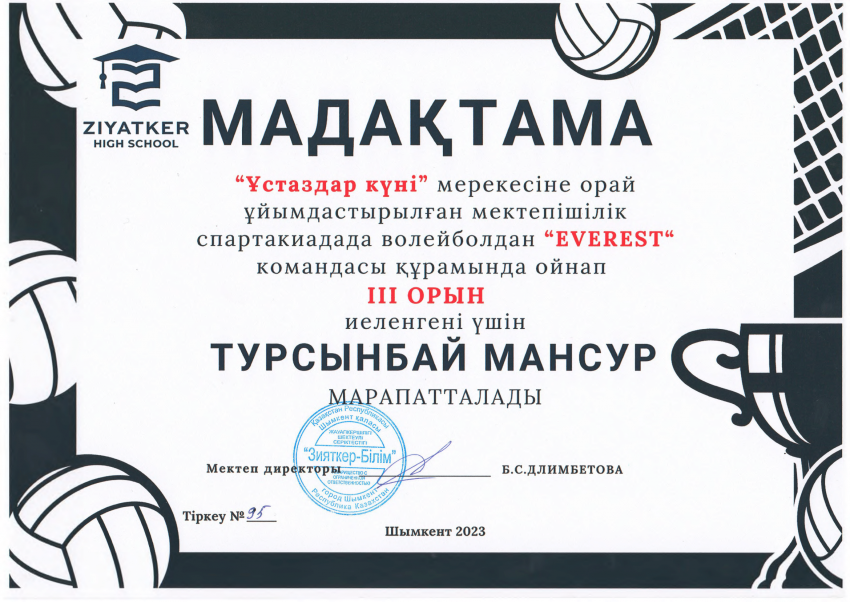 "Ұстаздар күні" мерекесіне орай ұйымдастырылған мектепішілік спартакиада мадақтамалары