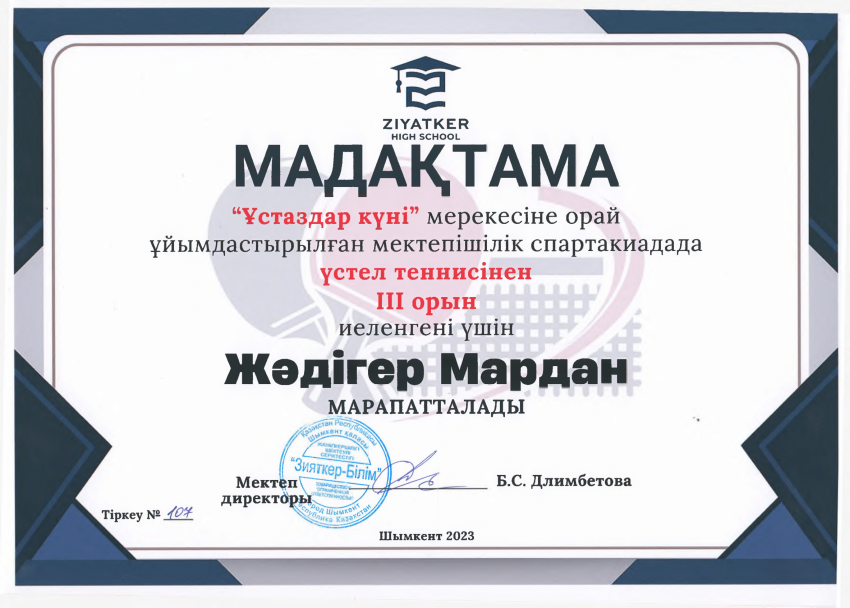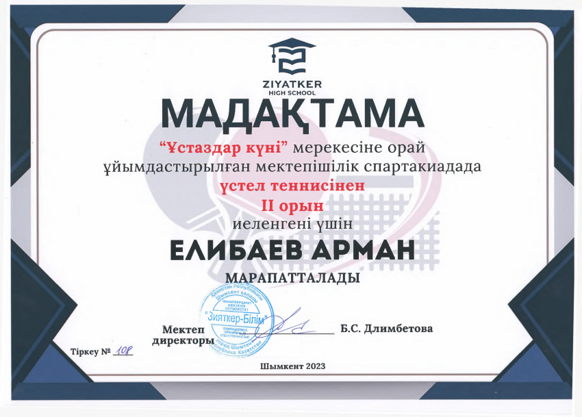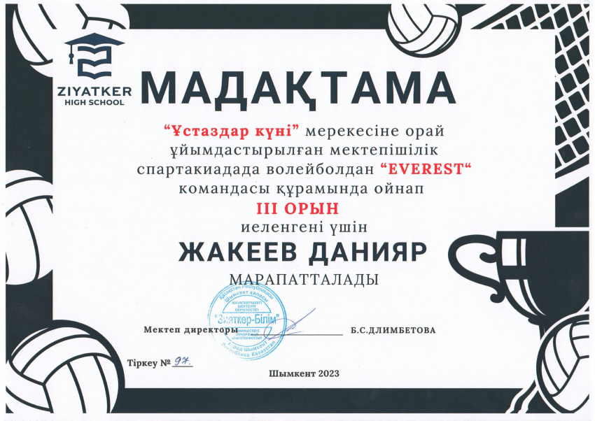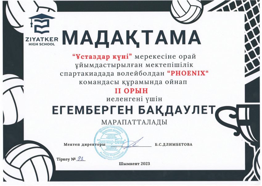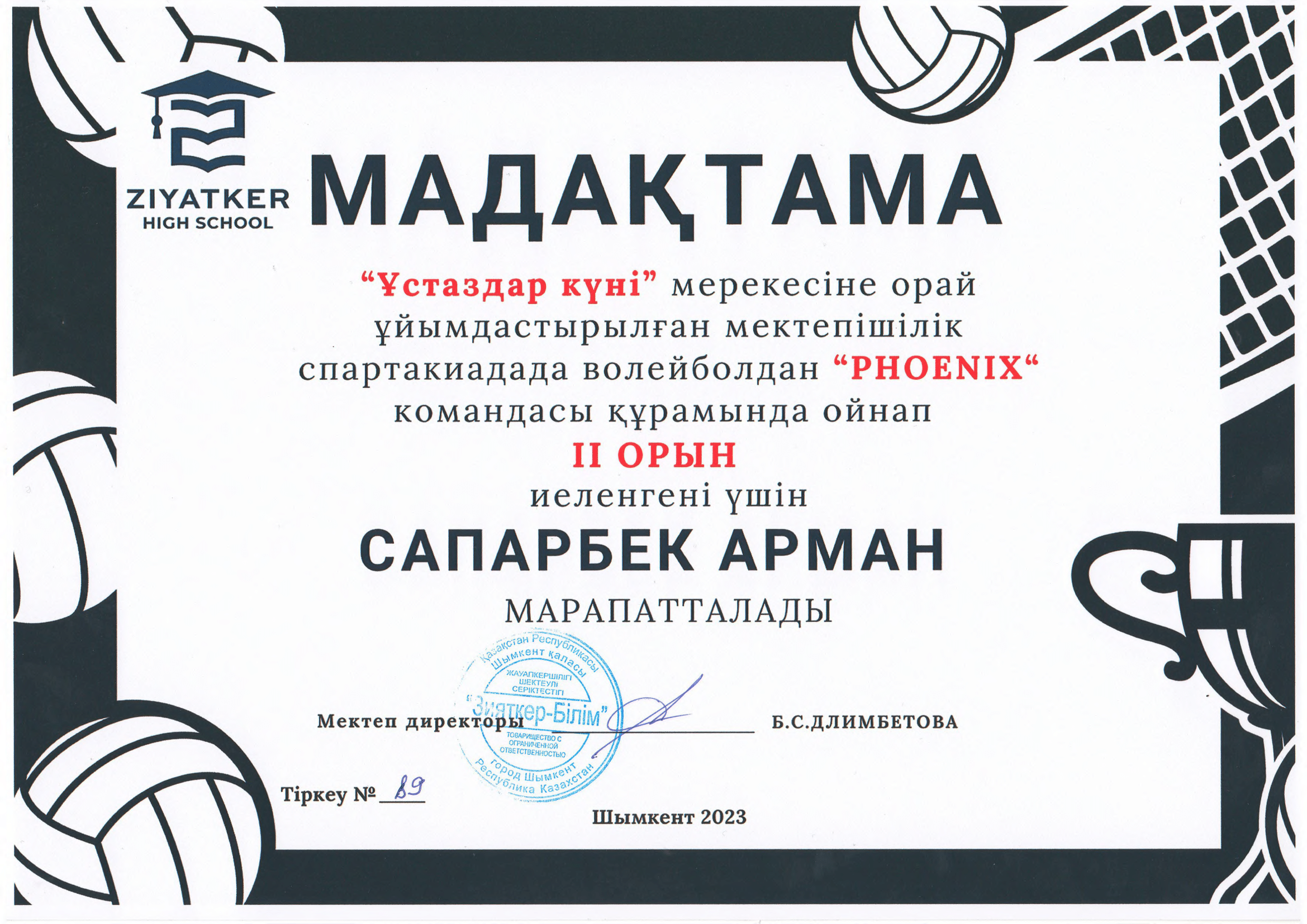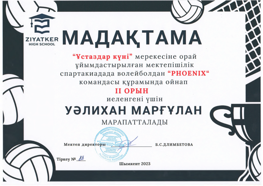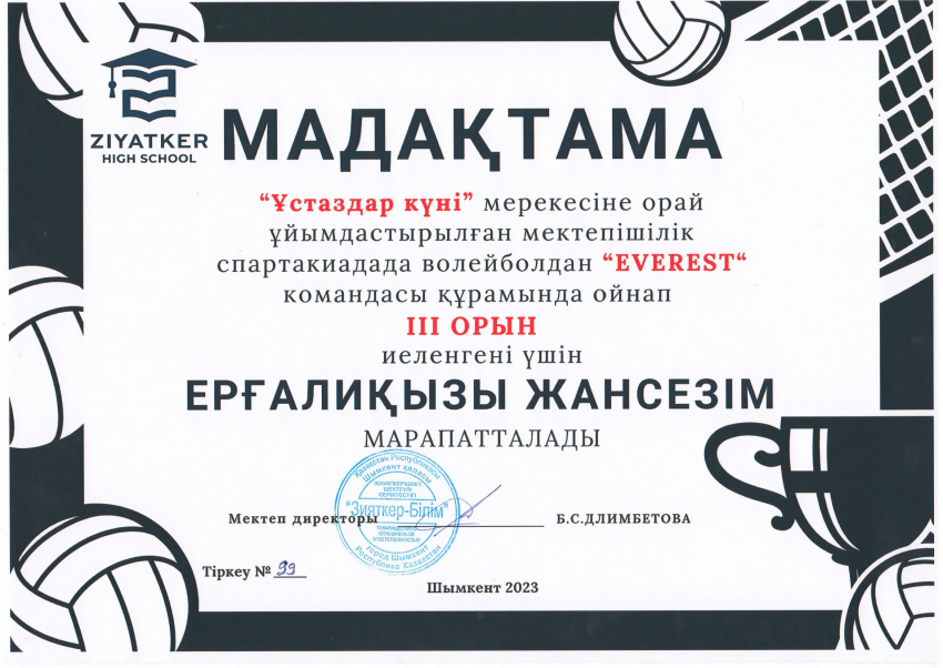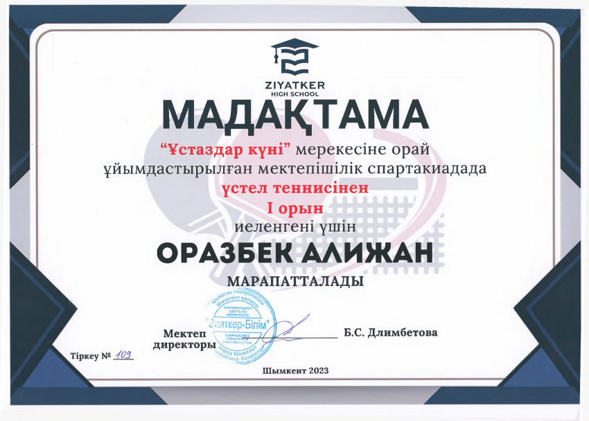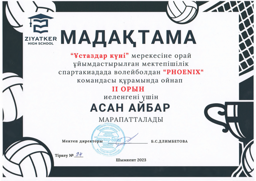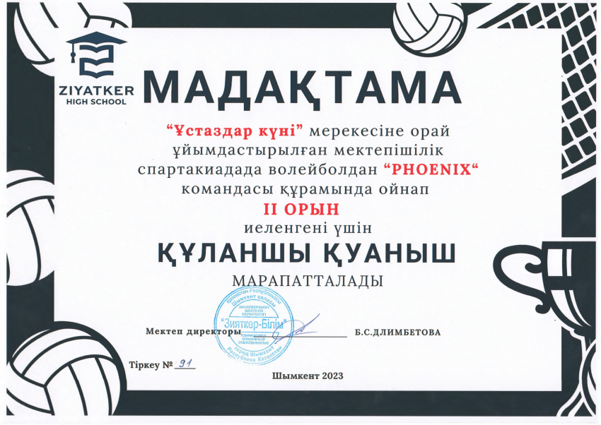 "Ұстаздар күні" мерекесіне орай ұйымдастырылған мектепішілік спартакиада мадақтамалары