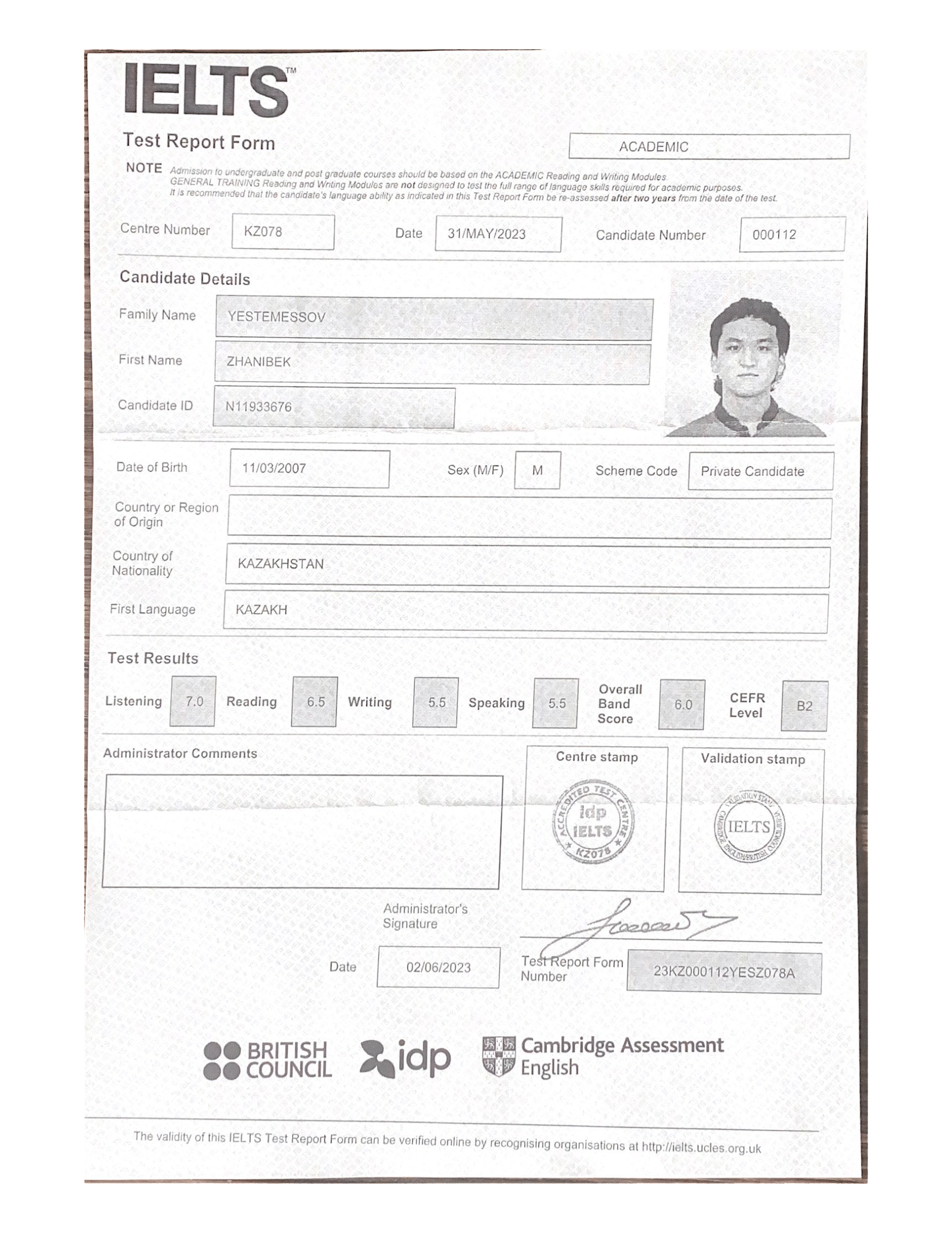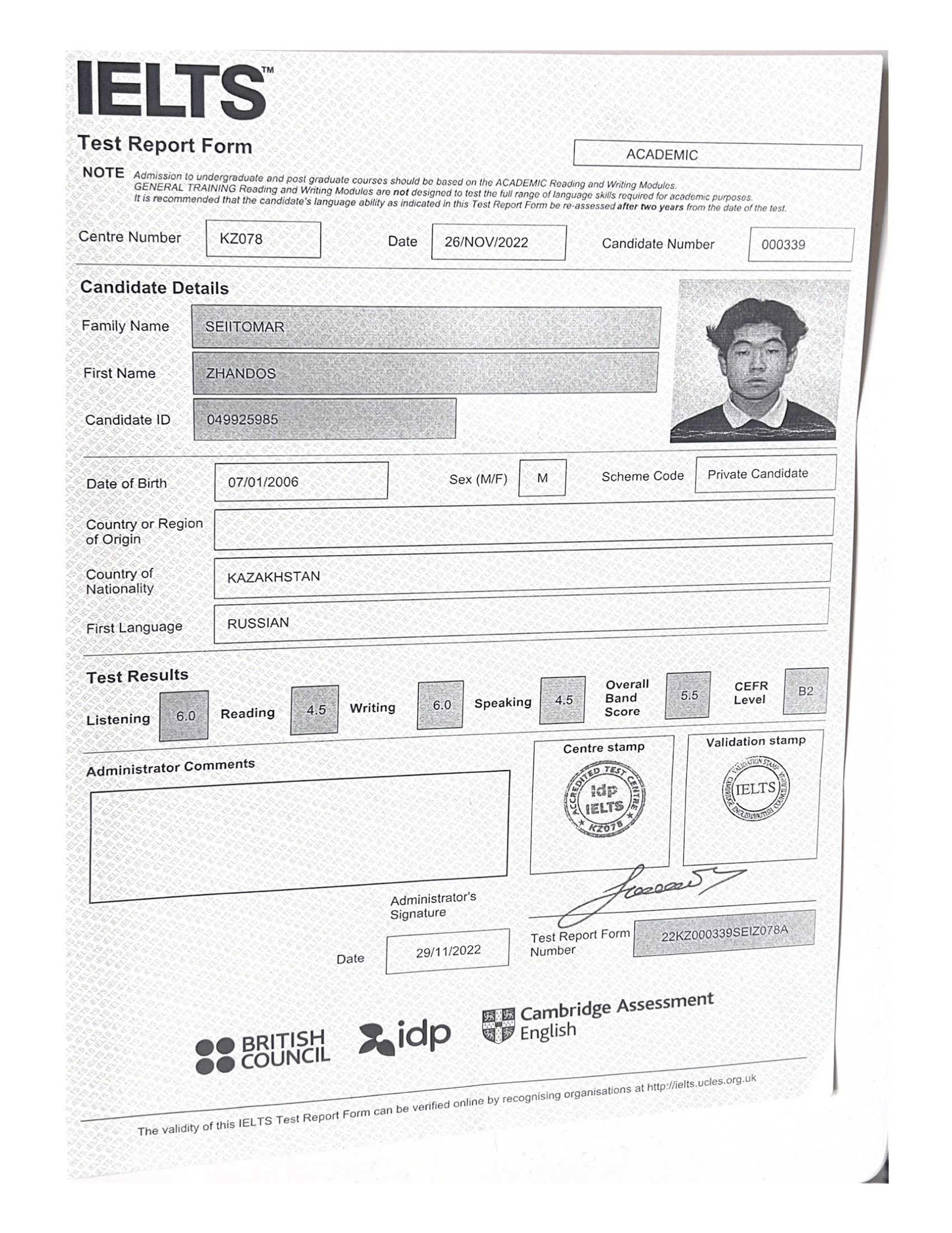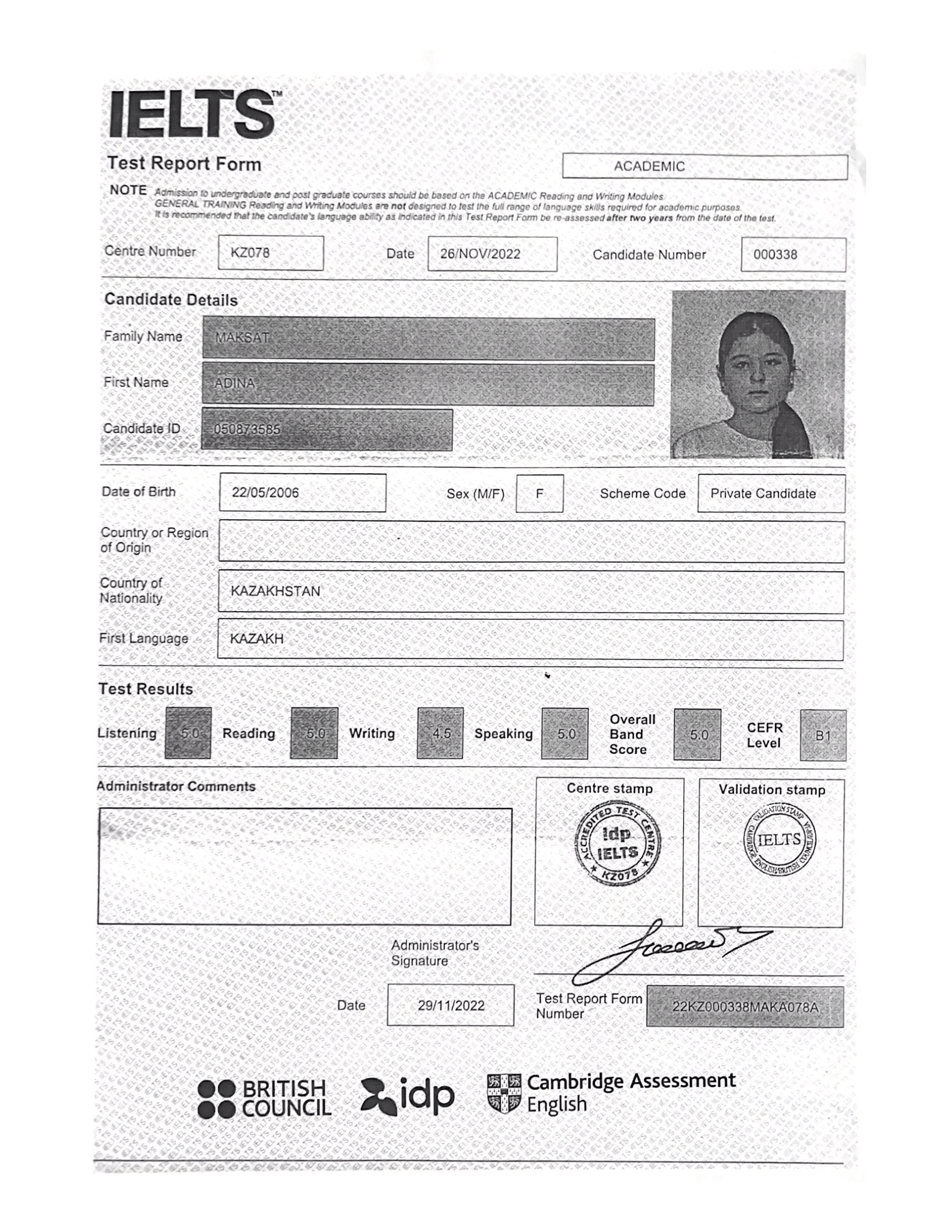 Oқушылардың IELTS нәтижелері » «Зияткер-Білім» мектебі