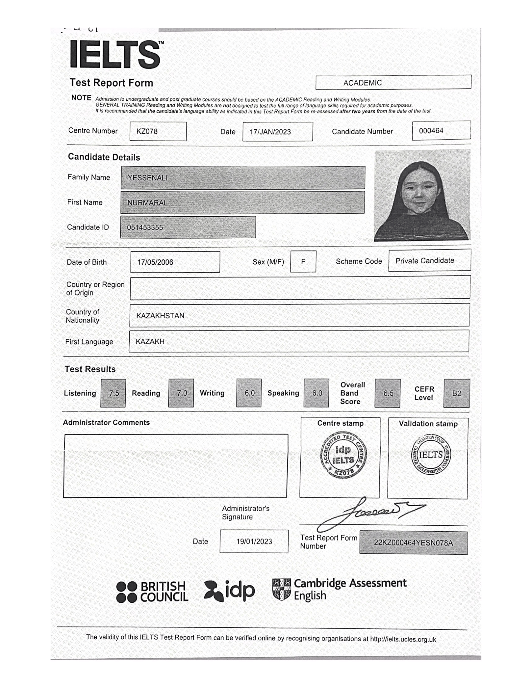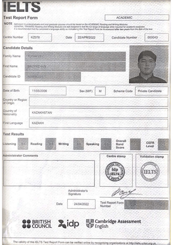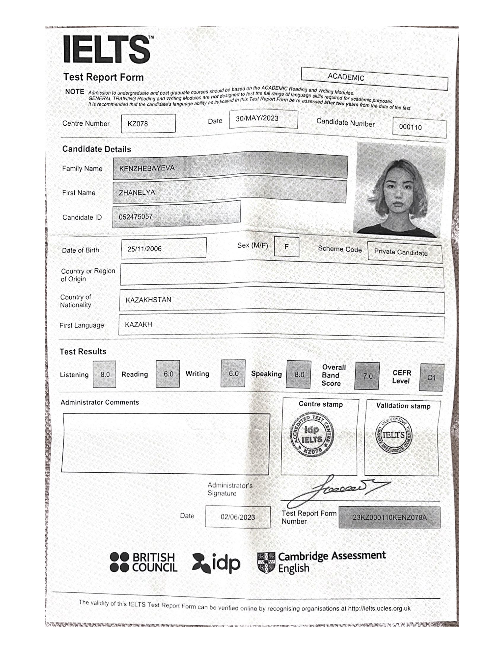 Oқушылардың IELTS нәтижелері » «Зияткер-Білім» мектебі