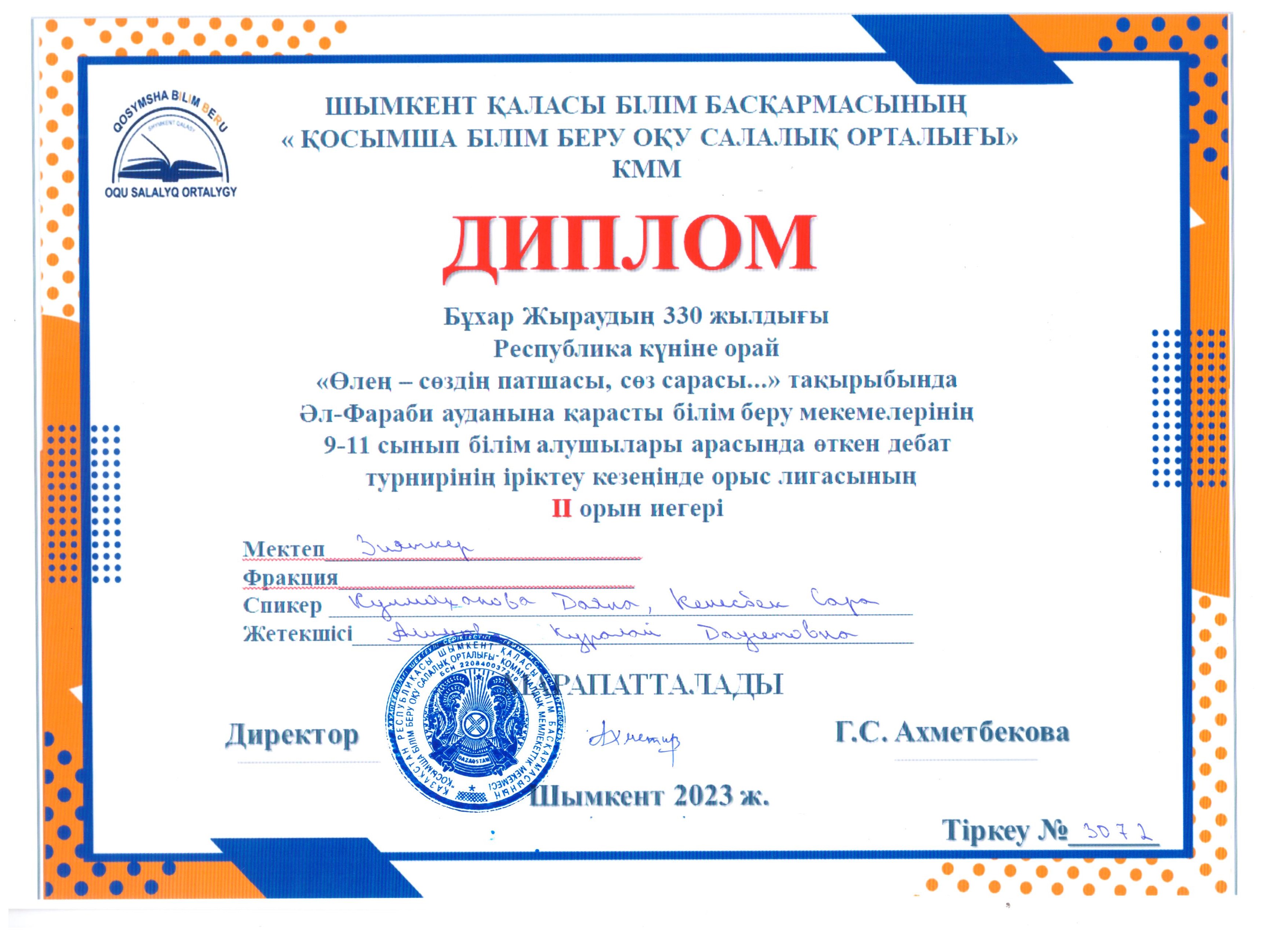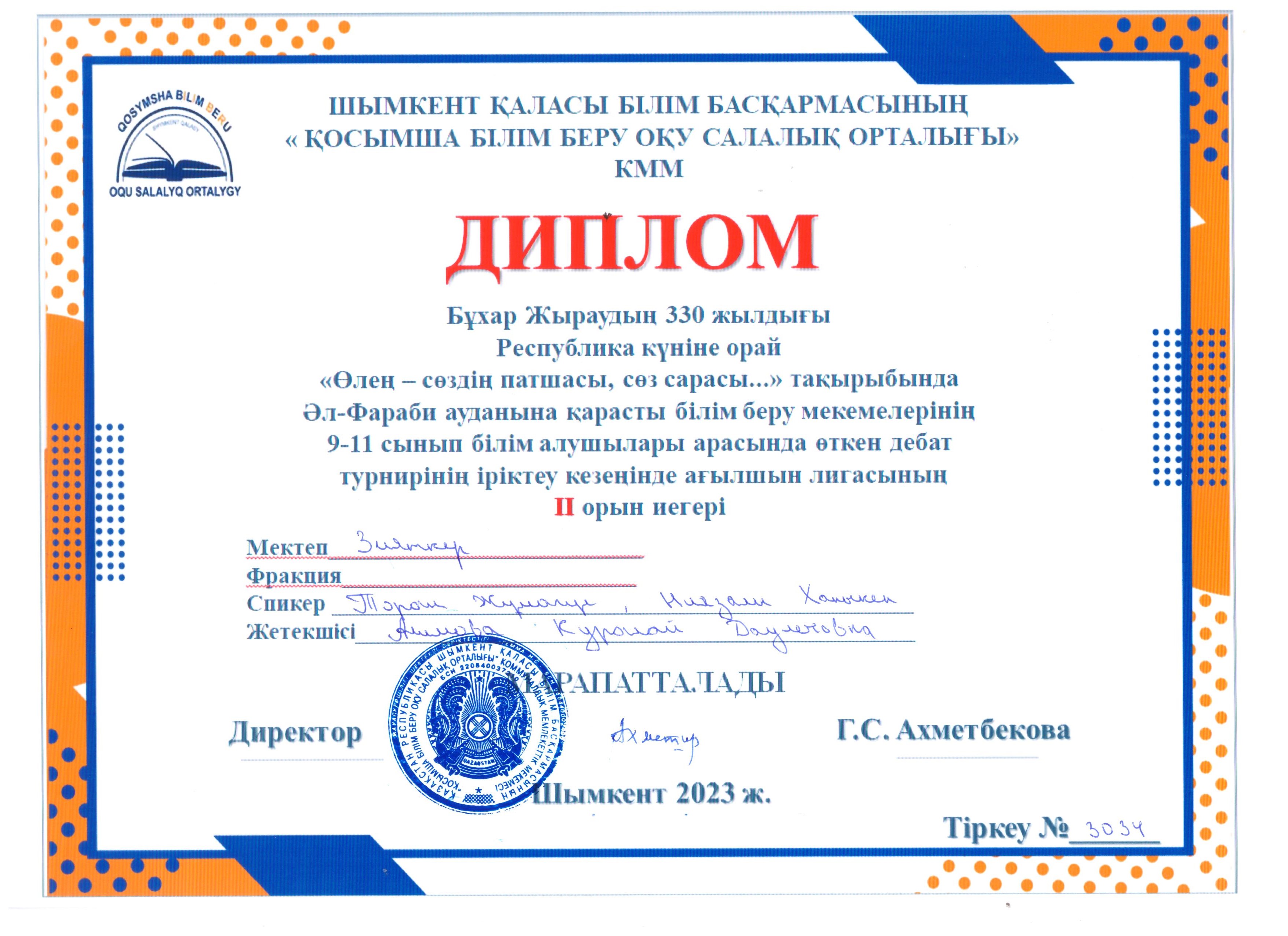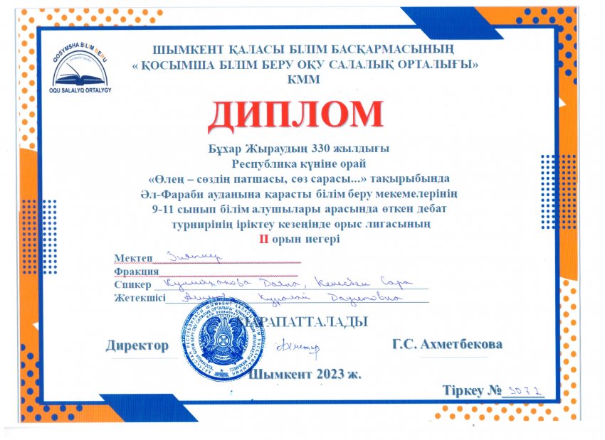 Бұхар Жыраудың 330 жылдығы Республика күніне орай "Өлең - сөздің патшасы, сөз сарасы..." тақырыбында дебат » «Зияткер-Білім» мектебі