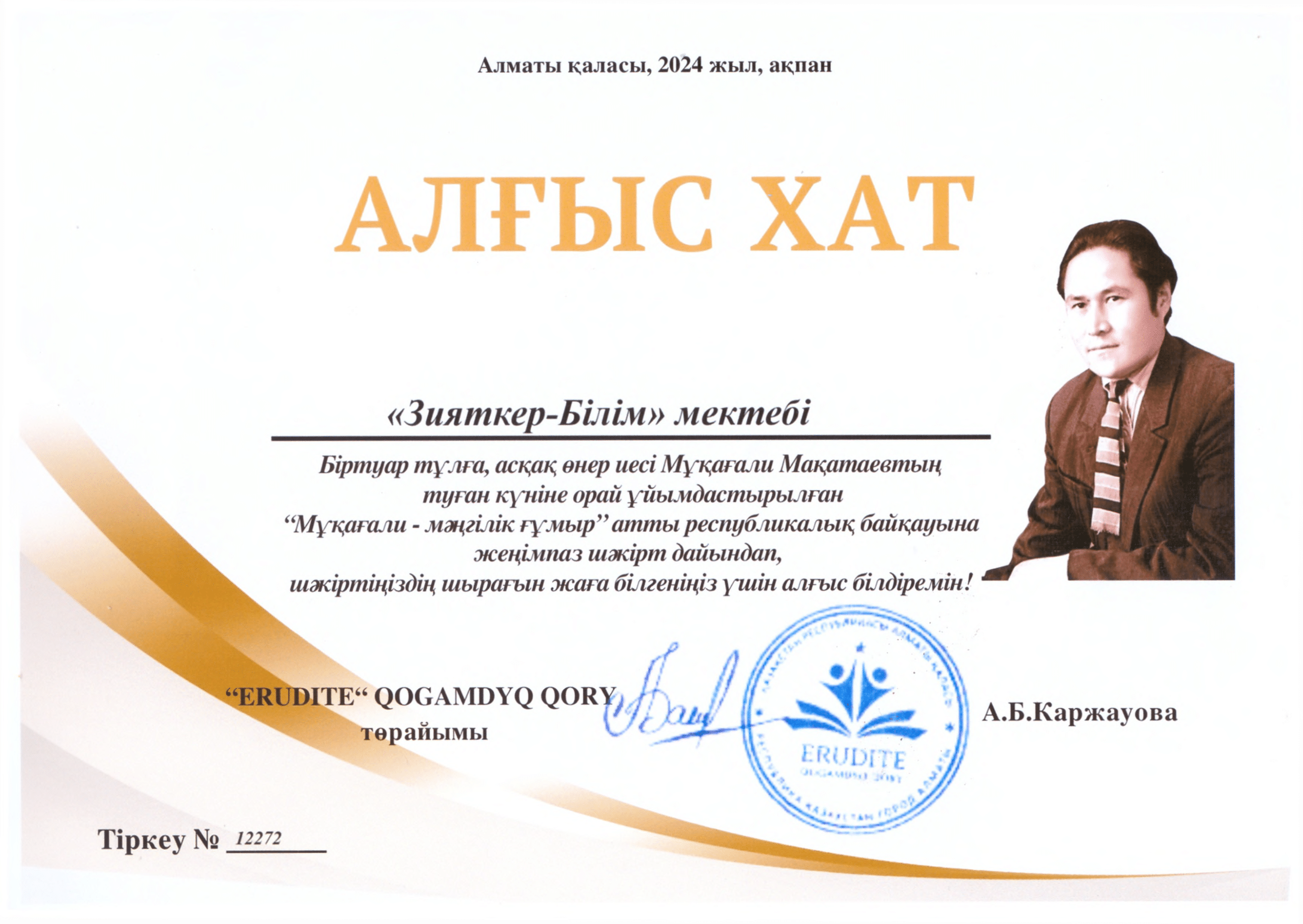 Мұқағали - мәңгілік ғұмыр » «Зияткер-Білім» мектебі